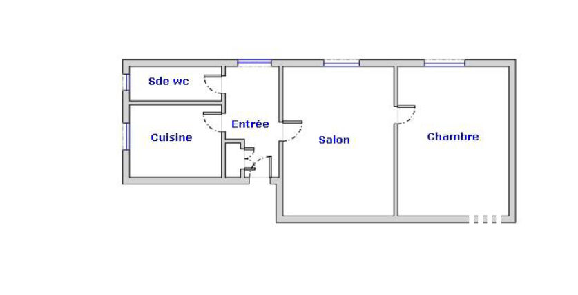Entrée avec placard, cuisine, séjour, salon, une chambre, salle d'eau-wc.