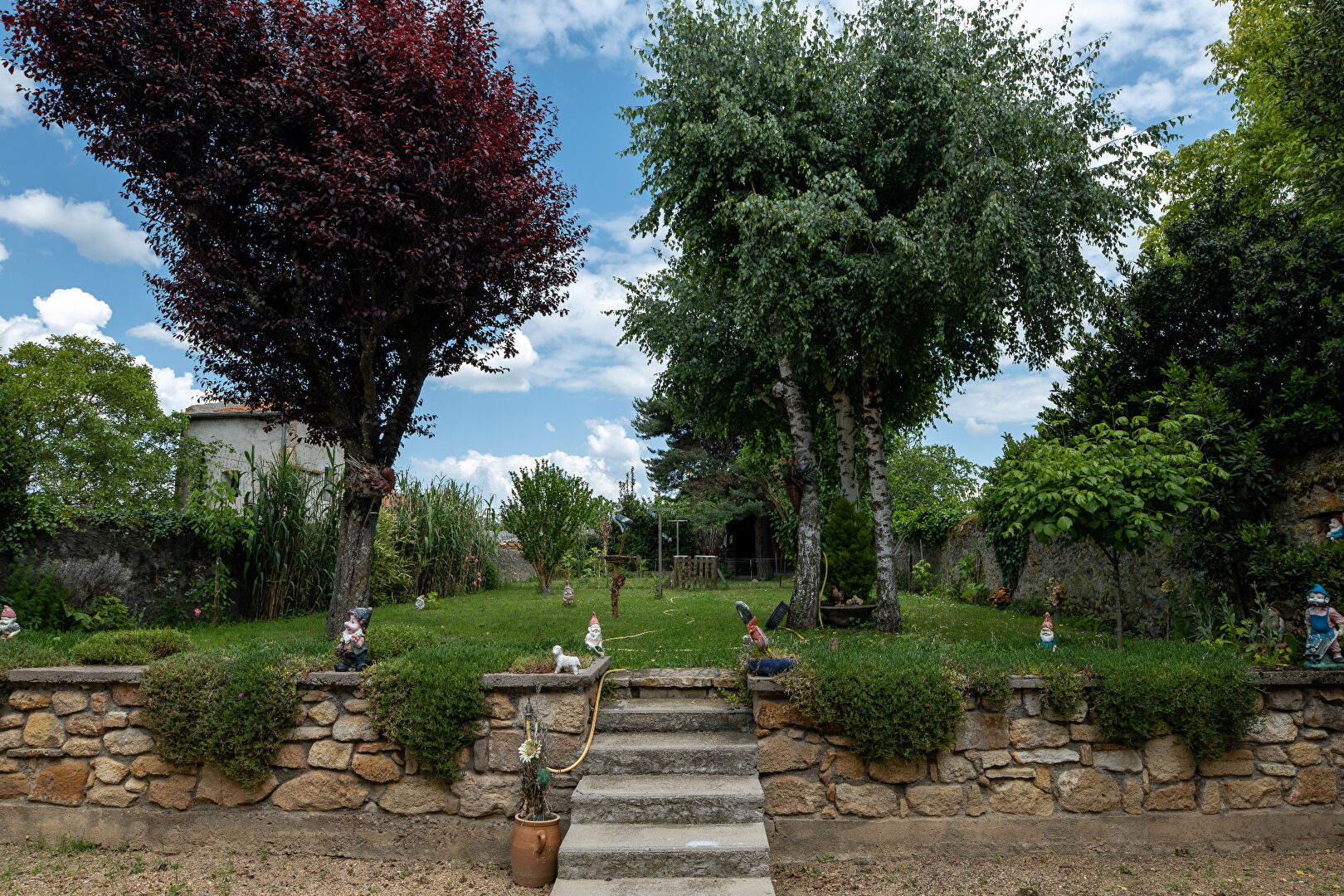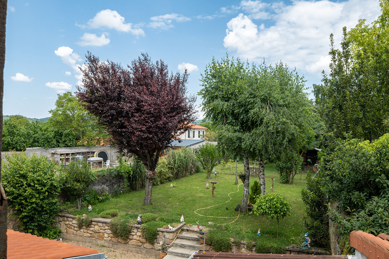Jardin clos et arboré de 417 m² à l'arrière de la maison, offrant calme et intimité