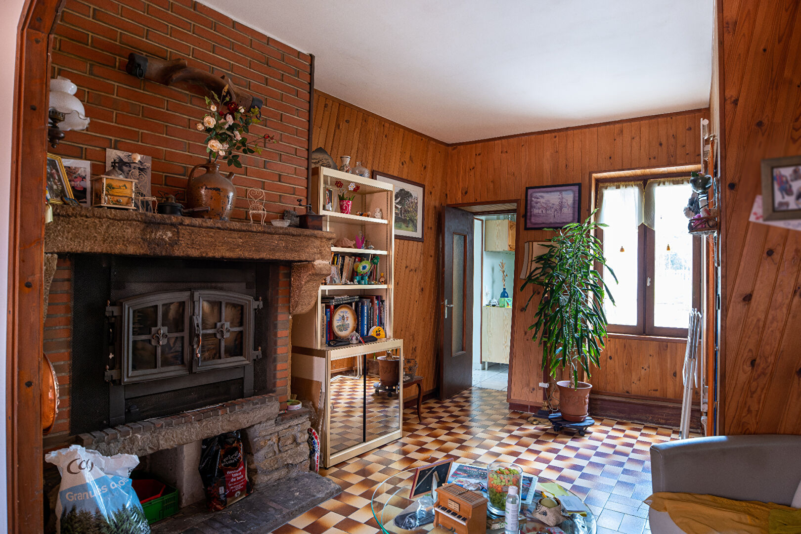 -Salon chaleureux avec insert cheminée