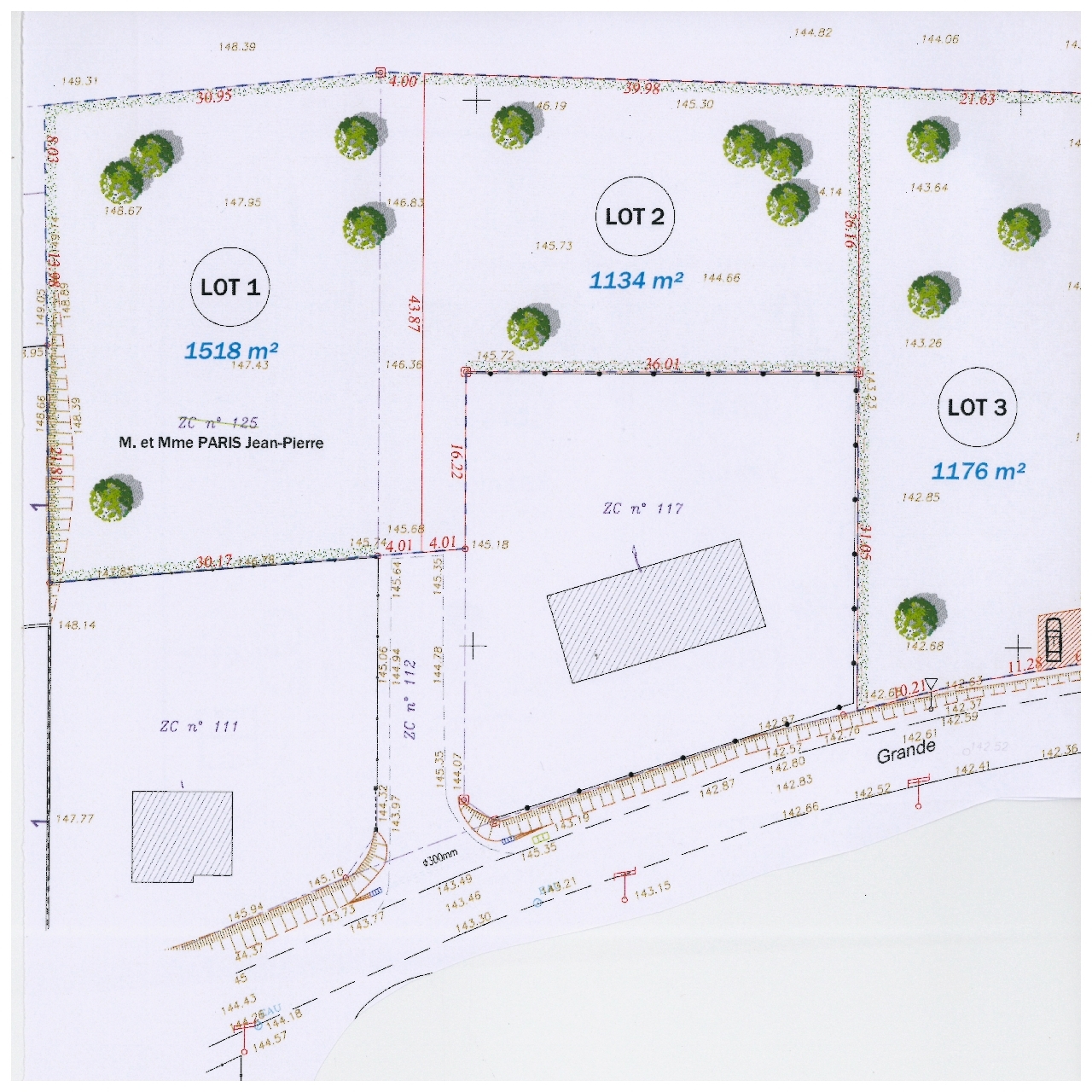 Eau potable et électricité dans la rue, devant le terrain. Assainissement des eaux usées individuel.