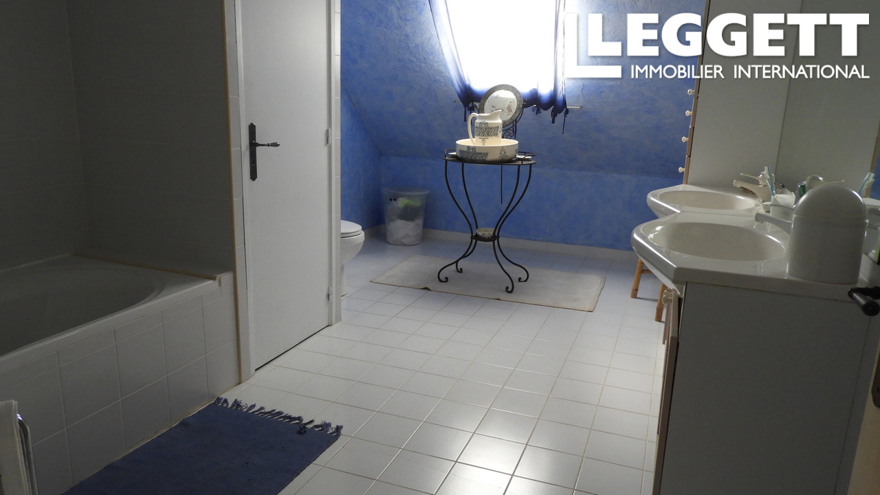 Belle cuisine américaine spacieuse avec ancien potager et cheminée impressionnante, salon/séjour spacieux attenant, 4 chambres dont une parentale avec sdb ensuite et trois chambres qui partagent une salle de bains (baignoire+toilette).