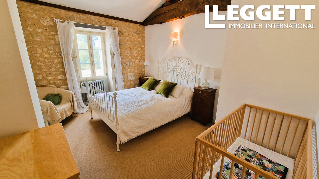 À l'extérieur : piscine semi-enterrée, grande grange en bois, ancienne porcherie et vaste terrain plat -- idéal pour projet gîte, activité équestre ou résidence principale. Située dans un hameau calme, à 5 km de Montguyon (commerces, écoles, station-service) et 15 km de Coutras (accès autoroute, supermarchés, marché, soins médicaux).