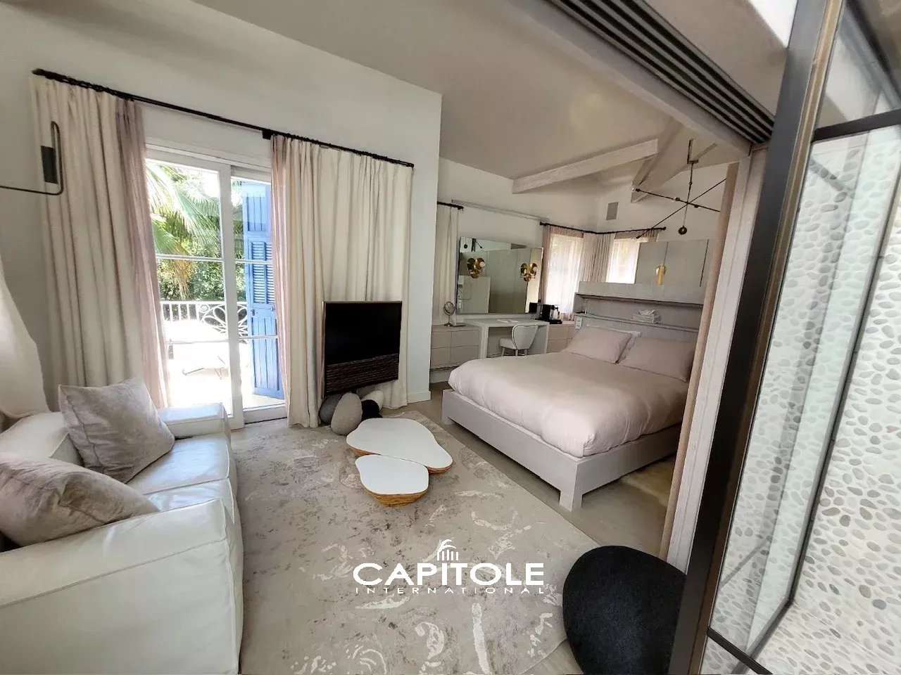 ANTIBES - EXCLUSIVITÉ, PONTEIL, Agréable villa de 180 m², au calme absolu, proche mer et commerces, quartier très recherché. Cette villa a été entièrement rénovée avec des prestations de haute qualité offrant un beau séjour-cuisine équipée, d'environ 50 m², spacieuse chambre parentale avec espace enfant d'environ 50 m², chambre avec salle de douche. Vendue meublée. Un joli studio complètement indépendant, un très beau jardin arboré et une piscine et Jacuzzi viennent compléter ce bien . Places de parkings. Réf: JC1777VM