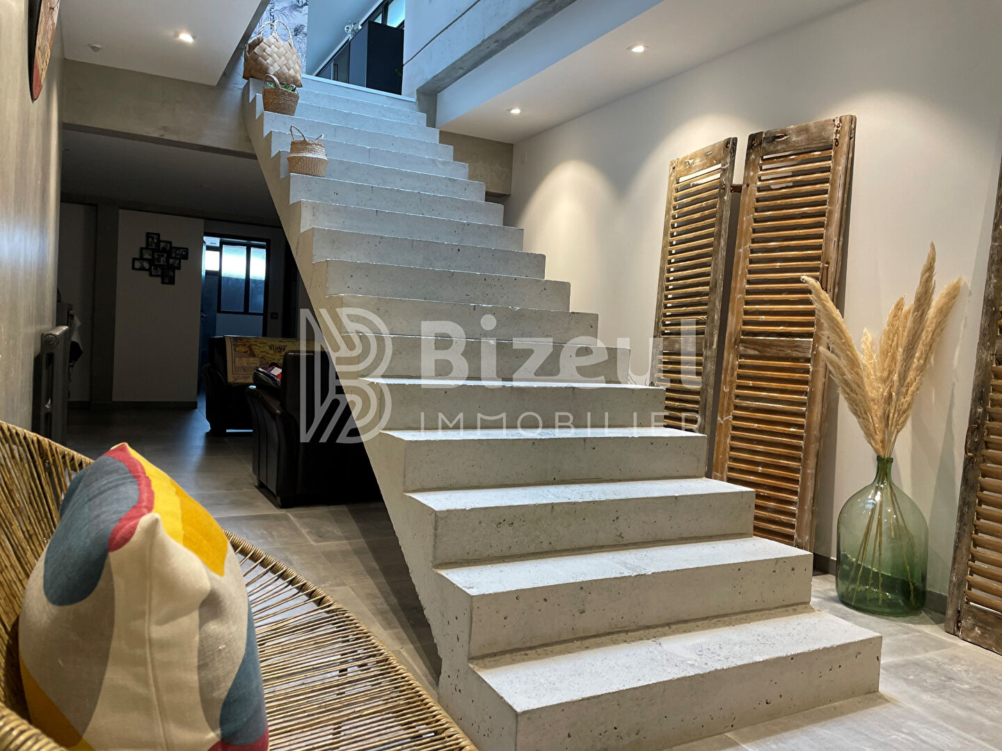 Dotée d'un très bel aspect architectural cette construction contemporaine aux beaux volumes comprend un espace de vie unique avec pas moins de 80 m² habitables exposé plein sud, trois suites parentales, un grand bureau/salle de jeux ou de sport, un espace de plain pied pouvant être aménagé en appartement ou bureau professionnel indépendant.