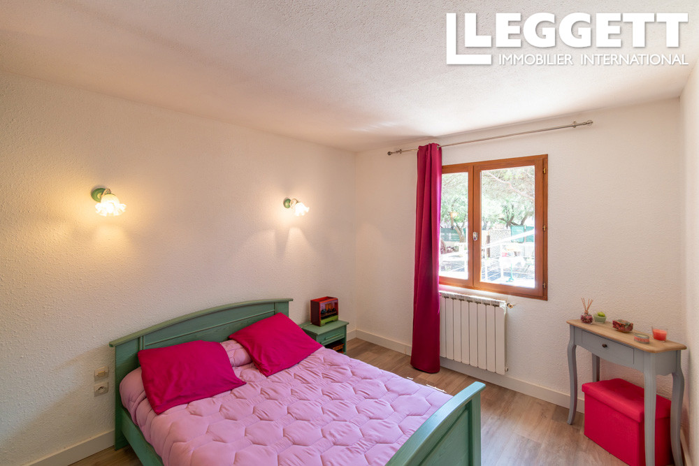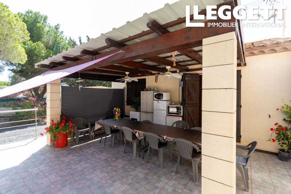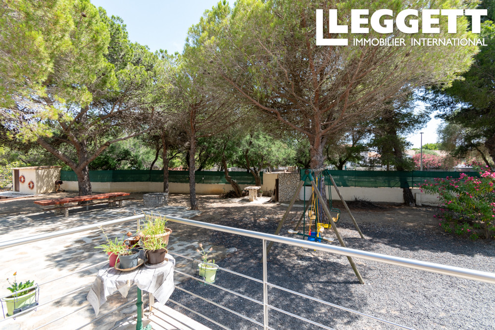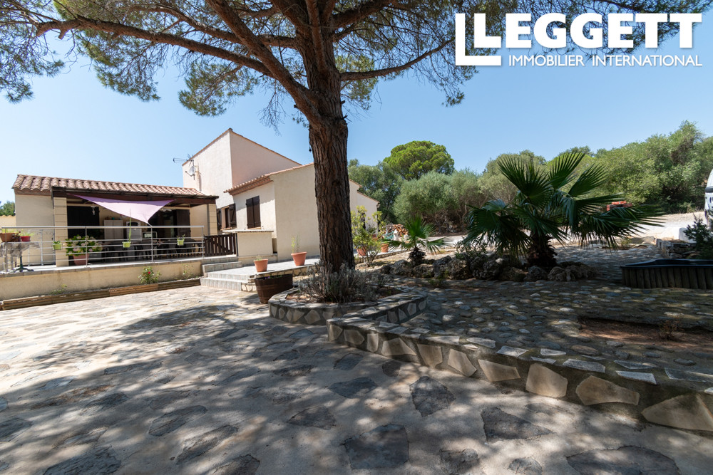 A31152JAV11 - Charmante bungalow construite en 1992, située à 650 mètres du centre du village de La Palme et à 8 minutes en voiture de la plage. Cadre paisible et naturel sans vis-à-vis, la propriété comprend 4250 m² de terrain entièrement clôturé, dont 50 m² constructibles. Isolation récente, salle de bain rénovée. Double vitrage, chauffage central au gaz, climatisation réversible dans le salon, et volets en bois. Raccordée à l'eau de ville, équipée d'une fosse septique et fibre optique. Intérieur: entrée (10 m²) avec placard intégré, trois chambres (11,5, 12 et 12,5 m²), salle d'eau (9 m²) avec grande douche à l'italienne, vasque et bidet, salon spacieux (42 m²) avec cuisine ouverte (10,5 m²), et portes-fenêtres coulissantes menant à une terrasse de 52 m². Additionnel: trois petites dépendances, un puits, et un bassin de 18 m² (60 cm de profondeur) connecté au puits (idéal pour garder des poissons), deux chenils, une volière, et un poulailler. Possibilité de construire des écuries..