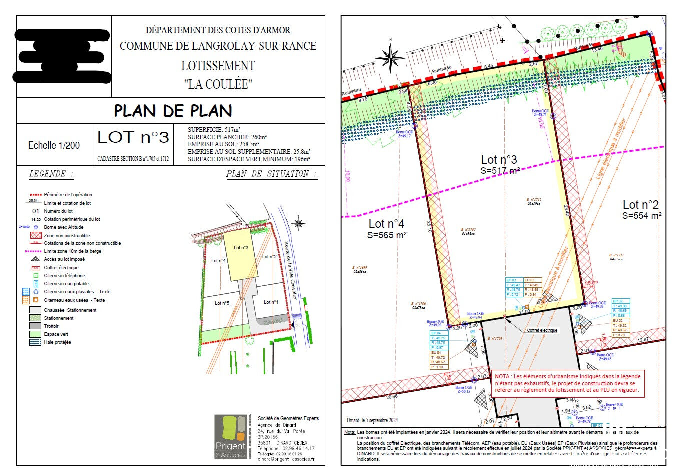 En direction du MINIHIC-SUR-RANCE, au sein d'un petit lotissement de 5 lots, terrain d'une superficie de 517 m².