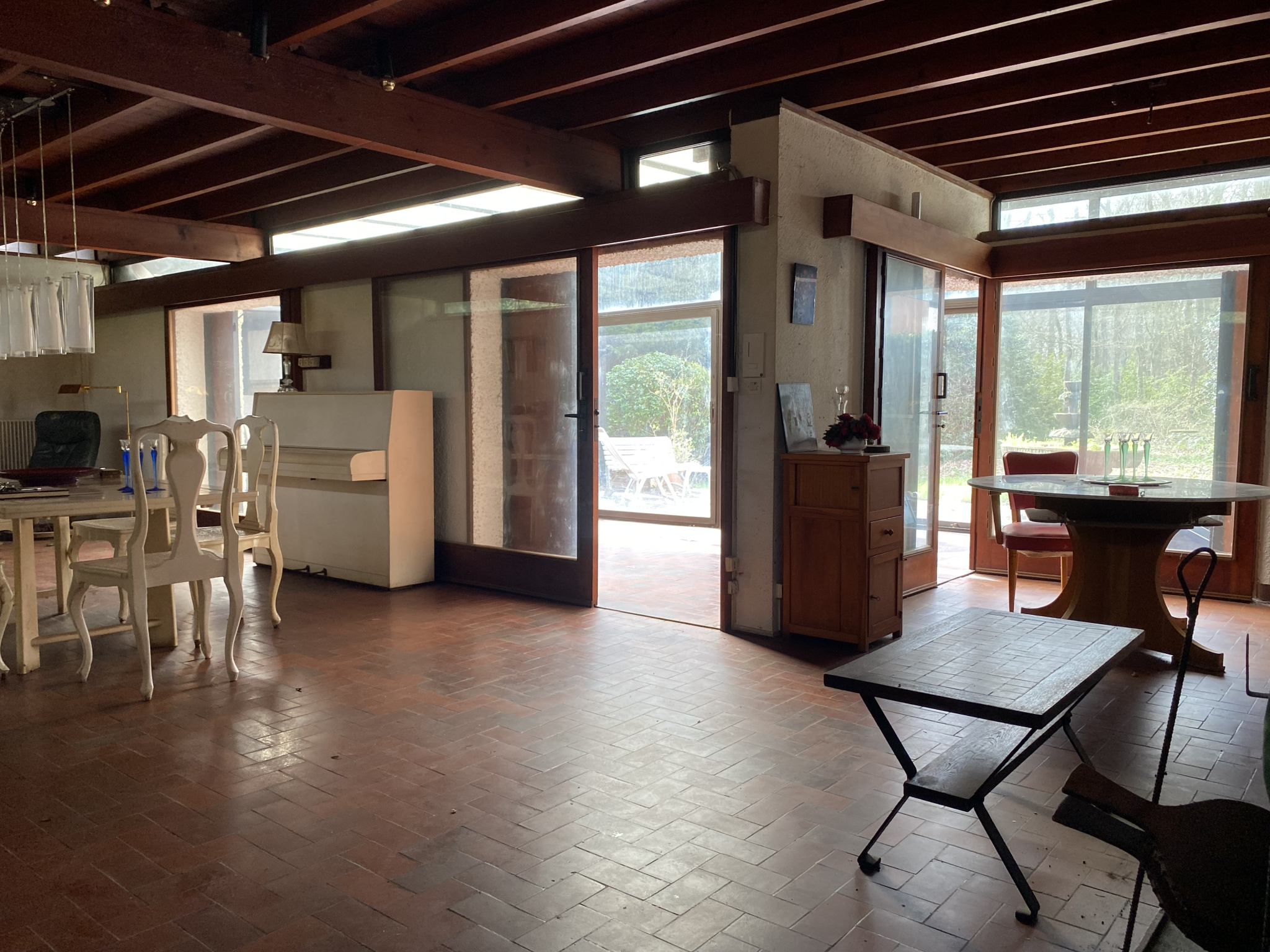 Belle propriété contemporaine de plain-pied située dans un petit village et édifiée sur un grand terrain boisé.