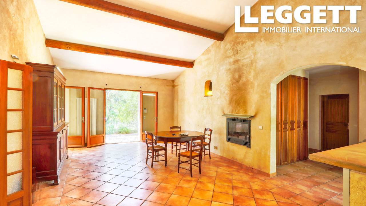 A31364EKO84 - Dans un quartier résidentiel et très calme de Rustrel, adossée à la montagne, cette jolie maison offre de grands volumes avec une pièce principale de 43 m² qui sert de salon et intègre une belle cuisine américaine de style provençal, une salle à manger de 28 m² et sa jolie véranda lumineuse donnant sur une terrasse orientée plein sud.