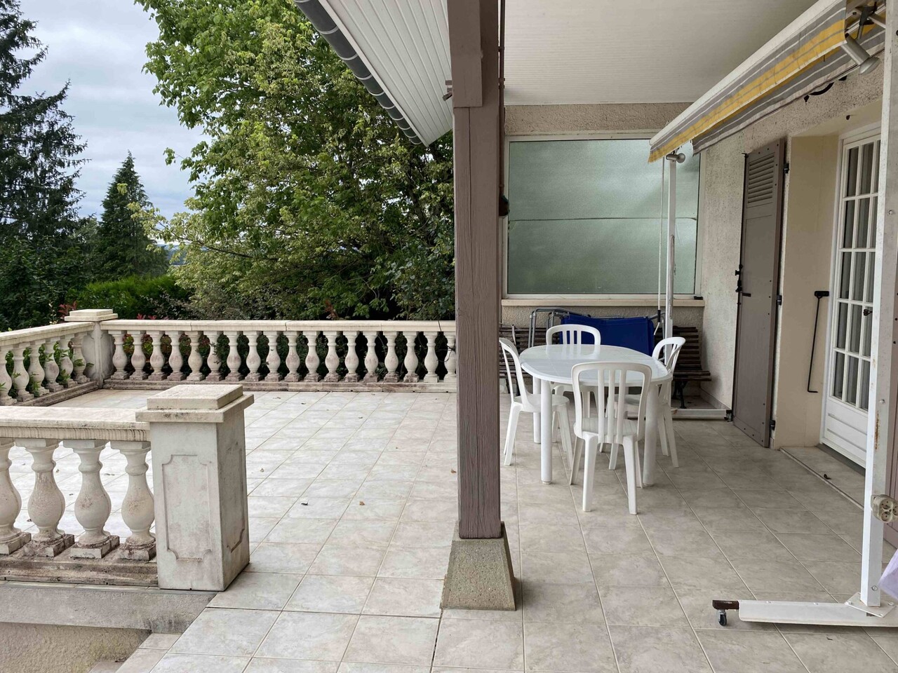 A VENDRE, TOURNUS EST, vaste villa traditionnelle de belle construction avec tour, sur sous-complet, 170 m² habitables sur deux niveaux, belle terrasse offrant une vue dominante, beau terrain arboré et clos de 2283 m². L'habitation comprend au rez-de-chaussée surélevé : entrée, séjour/salon avec cheminée insert ouvrant sur la terrasse, cuisine équipée, dégagement desservant deux chambres, dressing, salle de d'eau et toilettes séparées avec lave-mains. L'étage, accessible également par l'extérieur, se compose d'un logement indépendant comprenant pièce de vie avec cuisine équipée ouverte, salon, deux chambres, salle d'eau et toilettes séparées. La maison est équipée d'un chauffage électrique associé à l'insert, double vitrage bois, isolation doublage brique, l'assainissement est individuel est nécessite une remise aux normes. Le sous-complet comprend un grand garage avec fosse de vidange, espace atelier, cuisine d'été, remise et bûcher. La tour est utilisée à usage de stockage. L'environnement est calme, avec un terrain arboré, clos et bien entretenu avec cabanon de jardin en bois et portail électrique. Situation dominante.