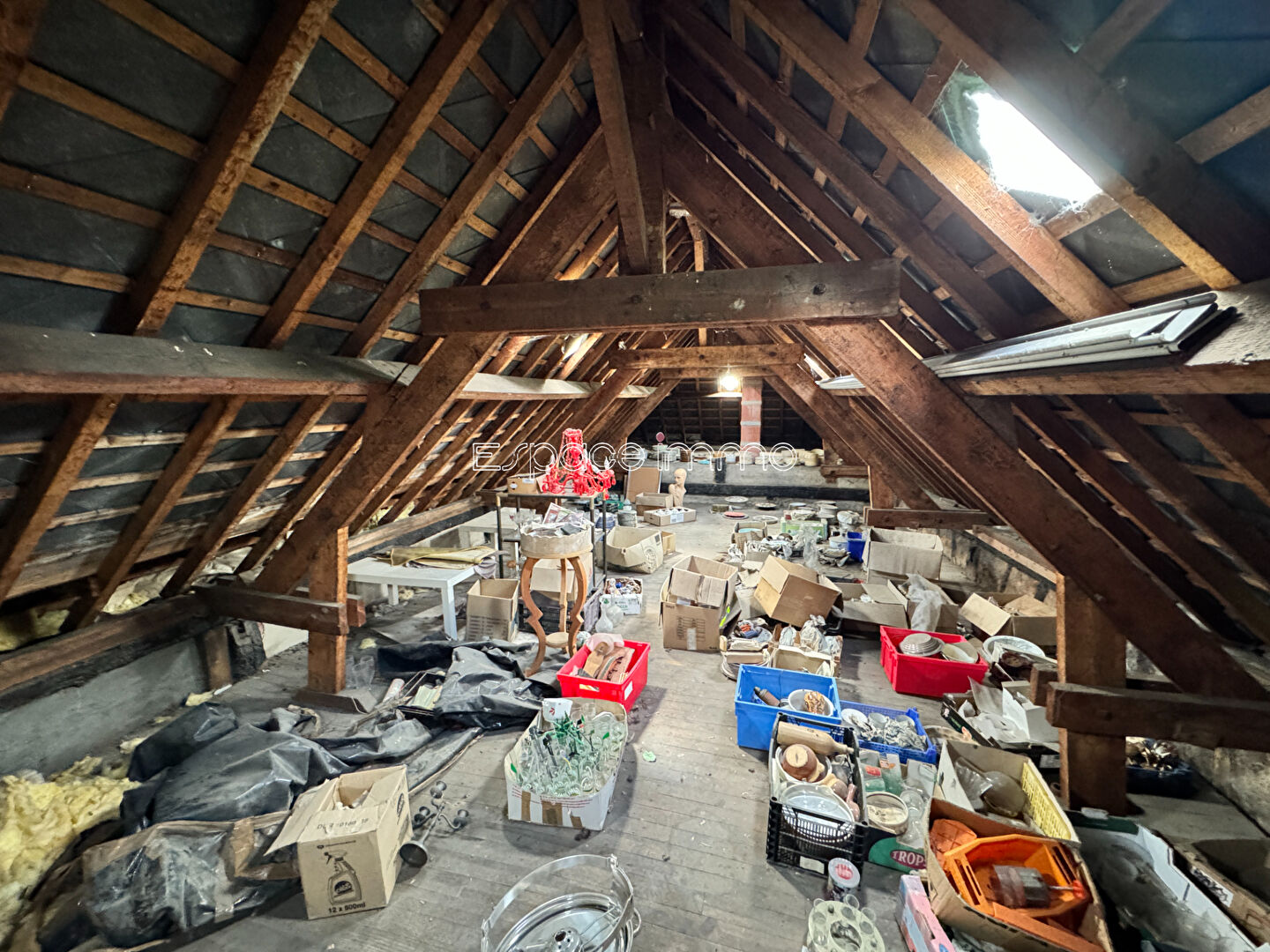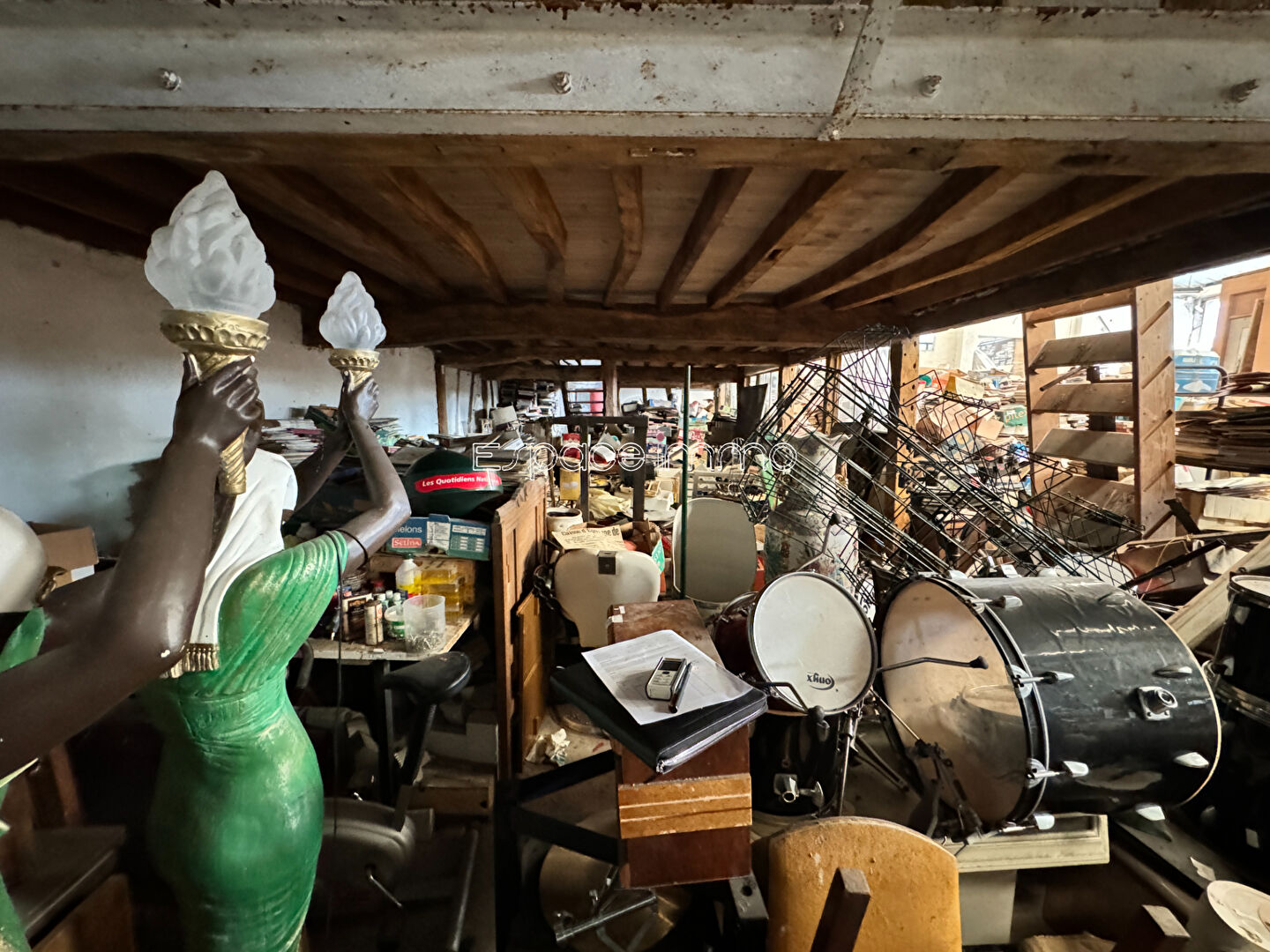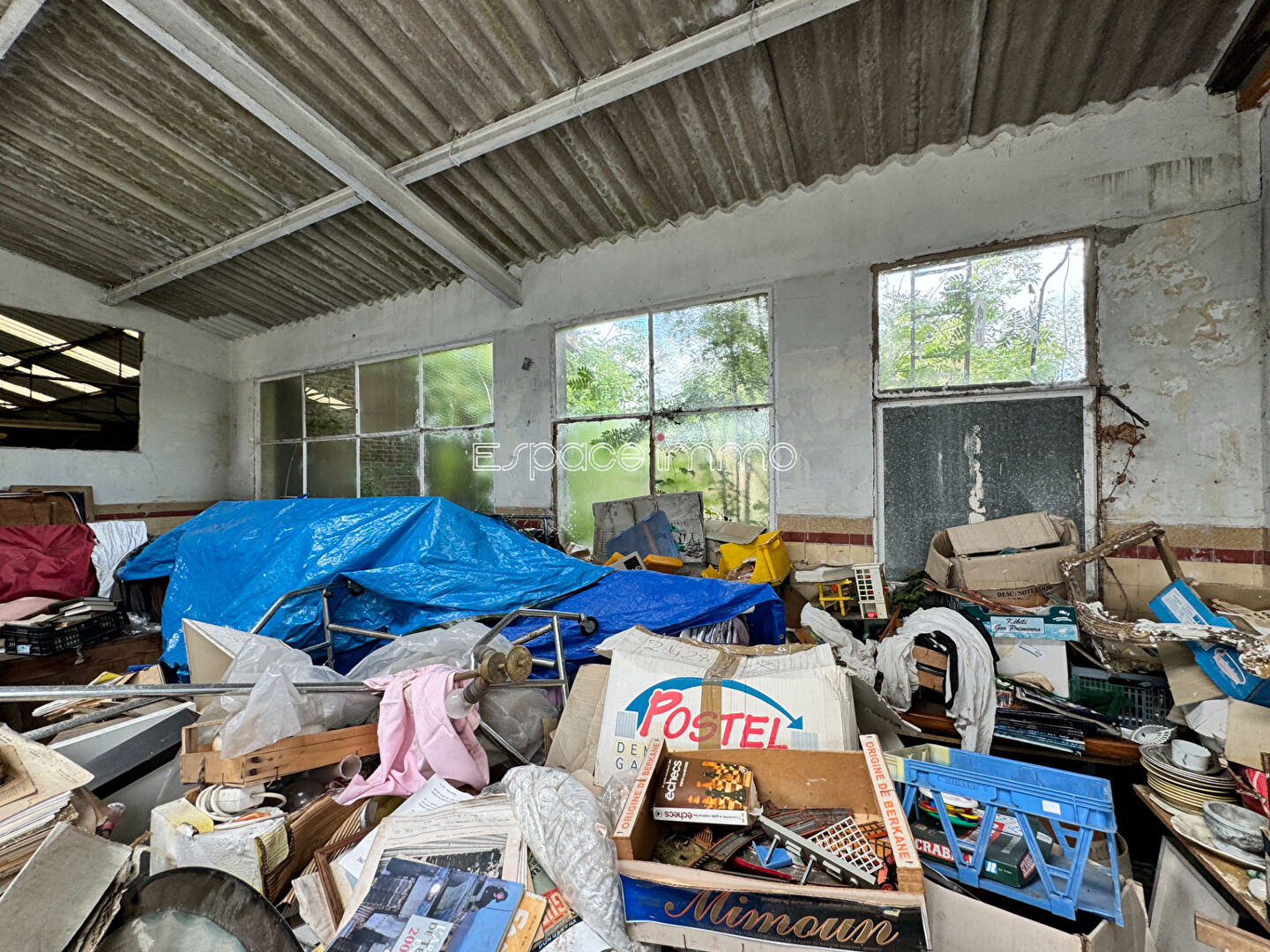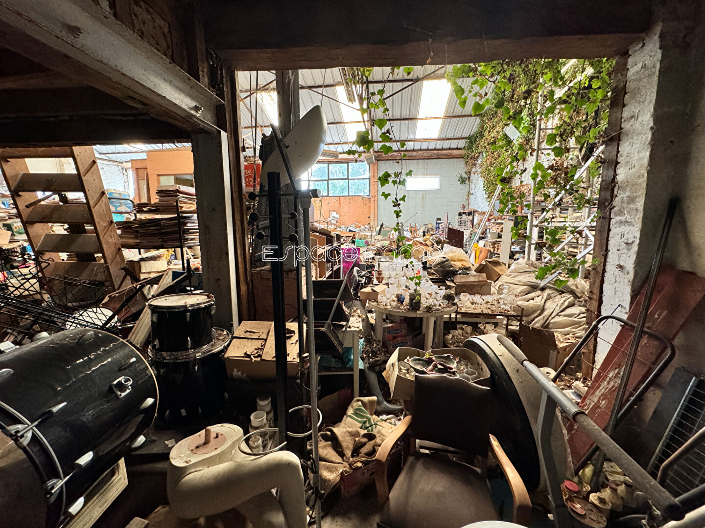 D'une surface de 467 m² environ, il comprend : un grand entrepôt au rez-de-chaussée, un grenier à l'étage. Sur l'arrière du bâtiment, vous disposerez d'un petit terrain clos.