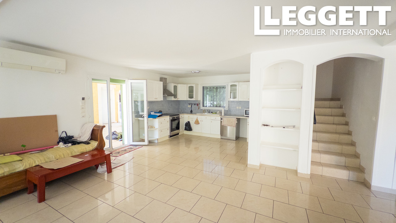 A31469DAL34 - Villa 5 chambres à Magalas, dans une rue privée. 191m² lumineux sur un terrain clos de 1190m². Grande terrasse couverte, piscine chauffée au sel (10x4m). Séjour ouvert de 65m² avec cuisine, 4 chambres avec placards, 1 chambre avec salle de bain à l'étage. Sous-sol avec double garage (46m²) et pièces supplémentaires avec WC, idéal pour logement indépendant. Équipements modernes. À 20 min de Béziers et Pézenas.