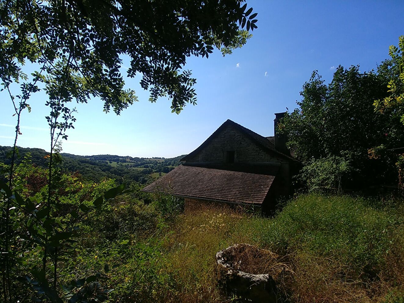 Maison en pierre offrant une belle pièce de vie lumineuse avec cheminée, coin cuisine, wc, ce niveau donne accès à un jardinet avec vue exceptionnelle sur la vallée, mezzanine pouvant accueillir un couchage;