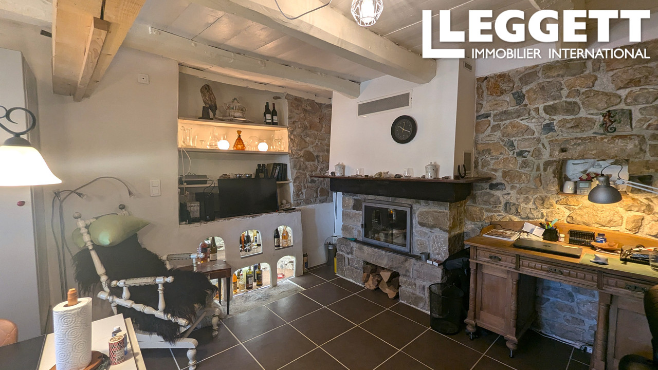 A30927PRD12 - Belle propriété de caractère sur 3 étages dans un village médiéval pittoresque. Le village dispose d'un restaurant/café autour d'une fontaine et de vues sur la campagne environnante. La maison dispose d'un garage au rez-de-chaussée, ce qui est inhabituel pour ce type de propriété. La maison possède de nombreux éléments d'origine, notamment deux poêles à bois et des murs en pierre apparente. Il y a deux terrasses séparées et un jardin en terrasse à l'arrière de la propriété. L'accès à la maison peut se faire séparément à chaque niveau, ce qui permet une grande souplesse d'utilisation. C'est une maison de vacances parfaite ou une maison permanente puisque la propriété est équipée de double vitrage et d'une climatisation réversible, ainsi que d'Internet.