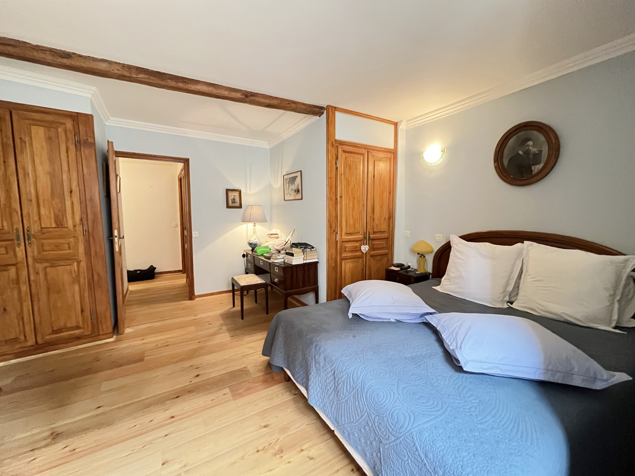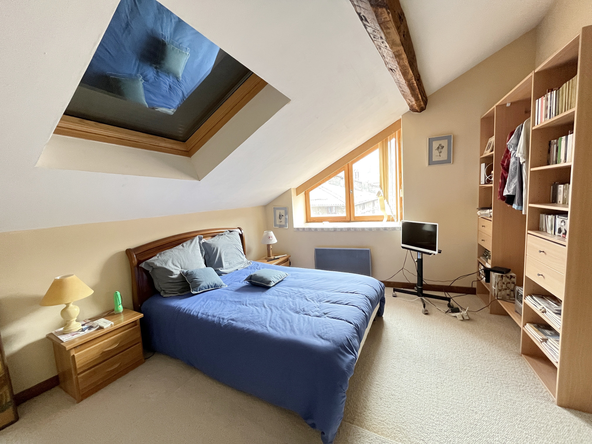 - Au 3ème étage : des combles aménagés en chambre avec placards sous pente et une salle de bain (baignoire, wc, bidet, lavabo).