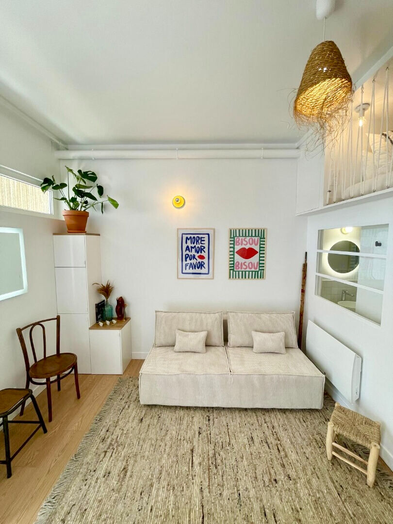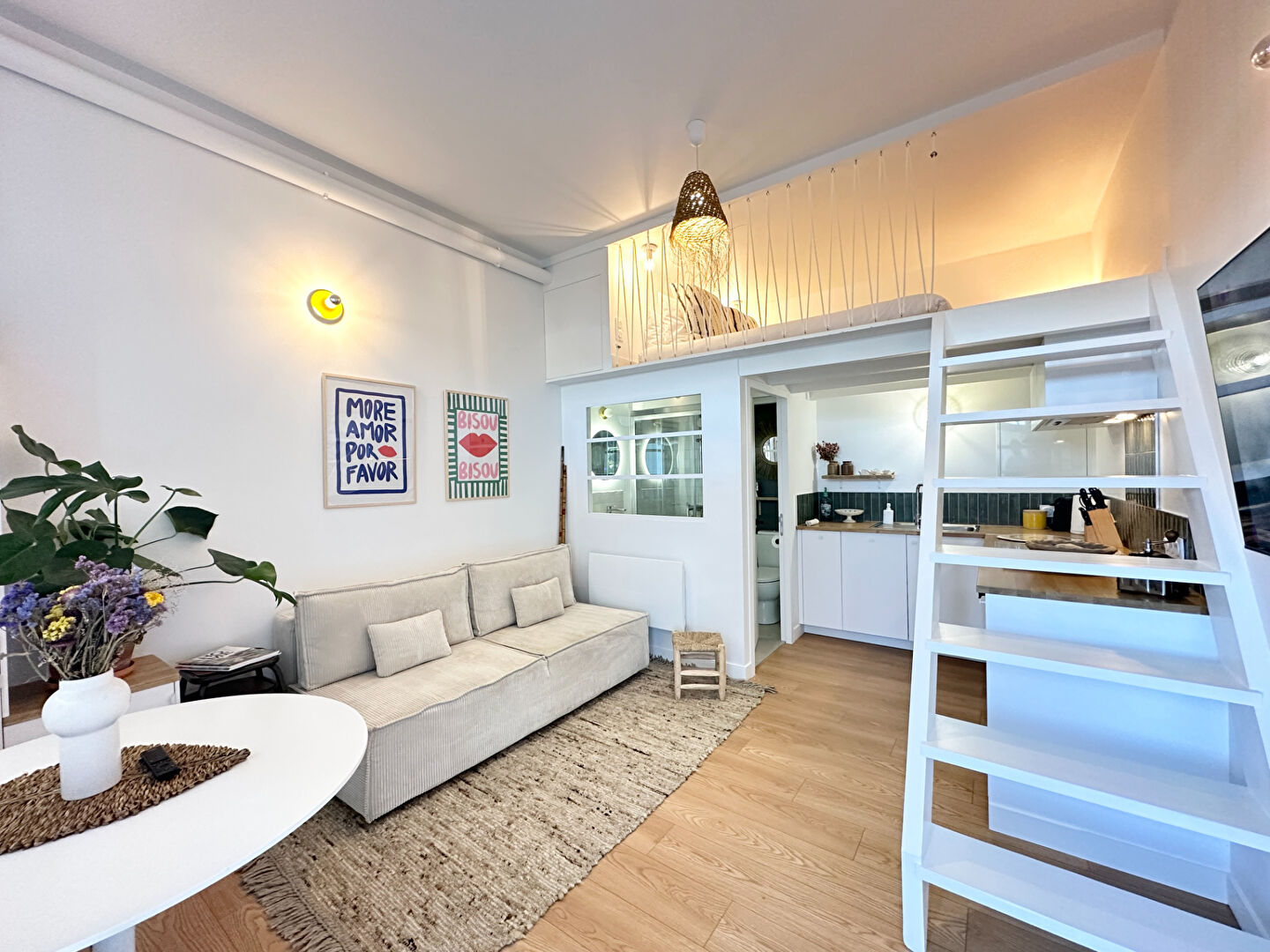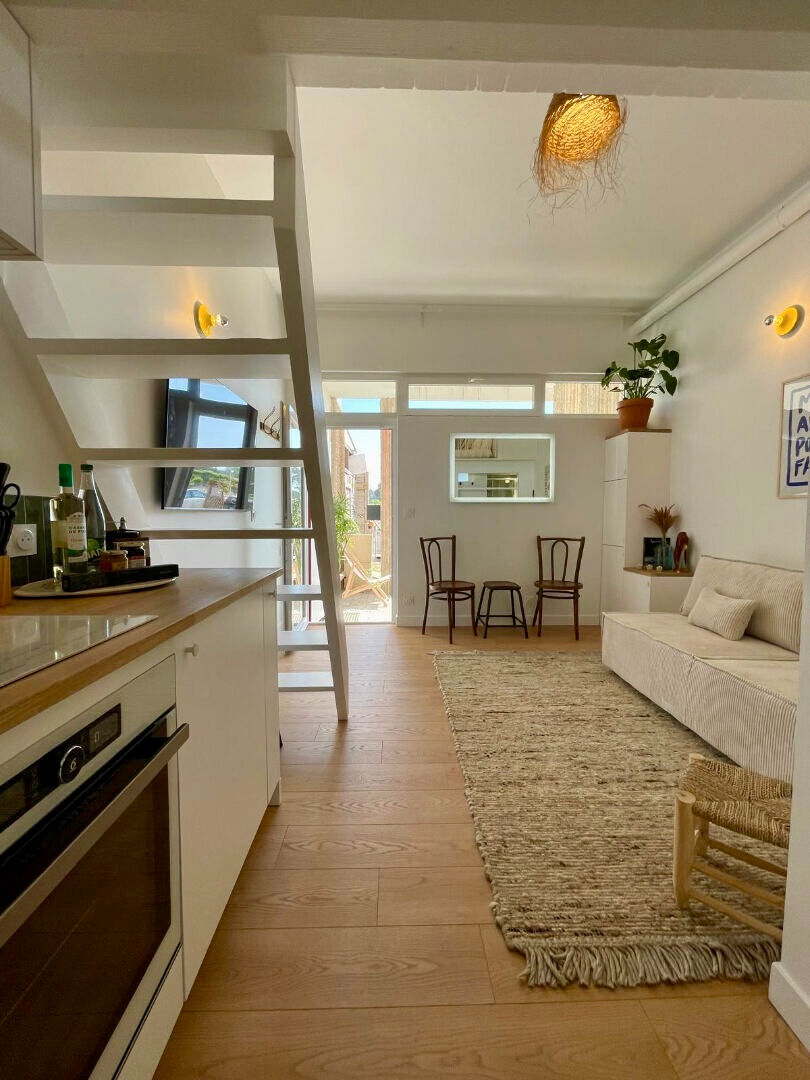 Il comporte une kitchenette équipée et aménagée ouverte sur la pièce de vie, une salle d'eau avec WC et une mezzanine.