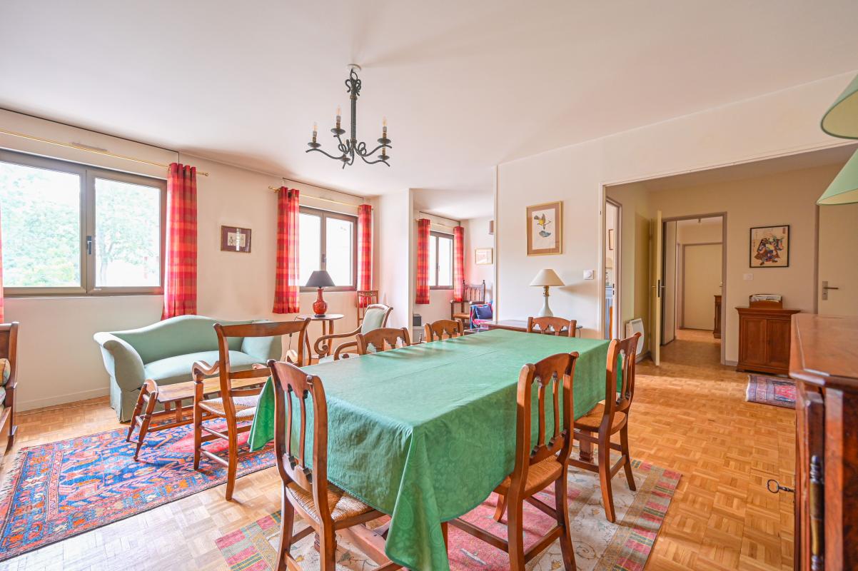 Il comprend un double séjour, 3 chambres à coucher, une cuisine indépendante, une salle de bains, une salle d'eau, et deux WC. Vous serez séduits par son plan en étoile, et son très bon état général. Appartement traversant et très lumineux! Idéal familles car jardin de la copropriété accessible aux enfants.
