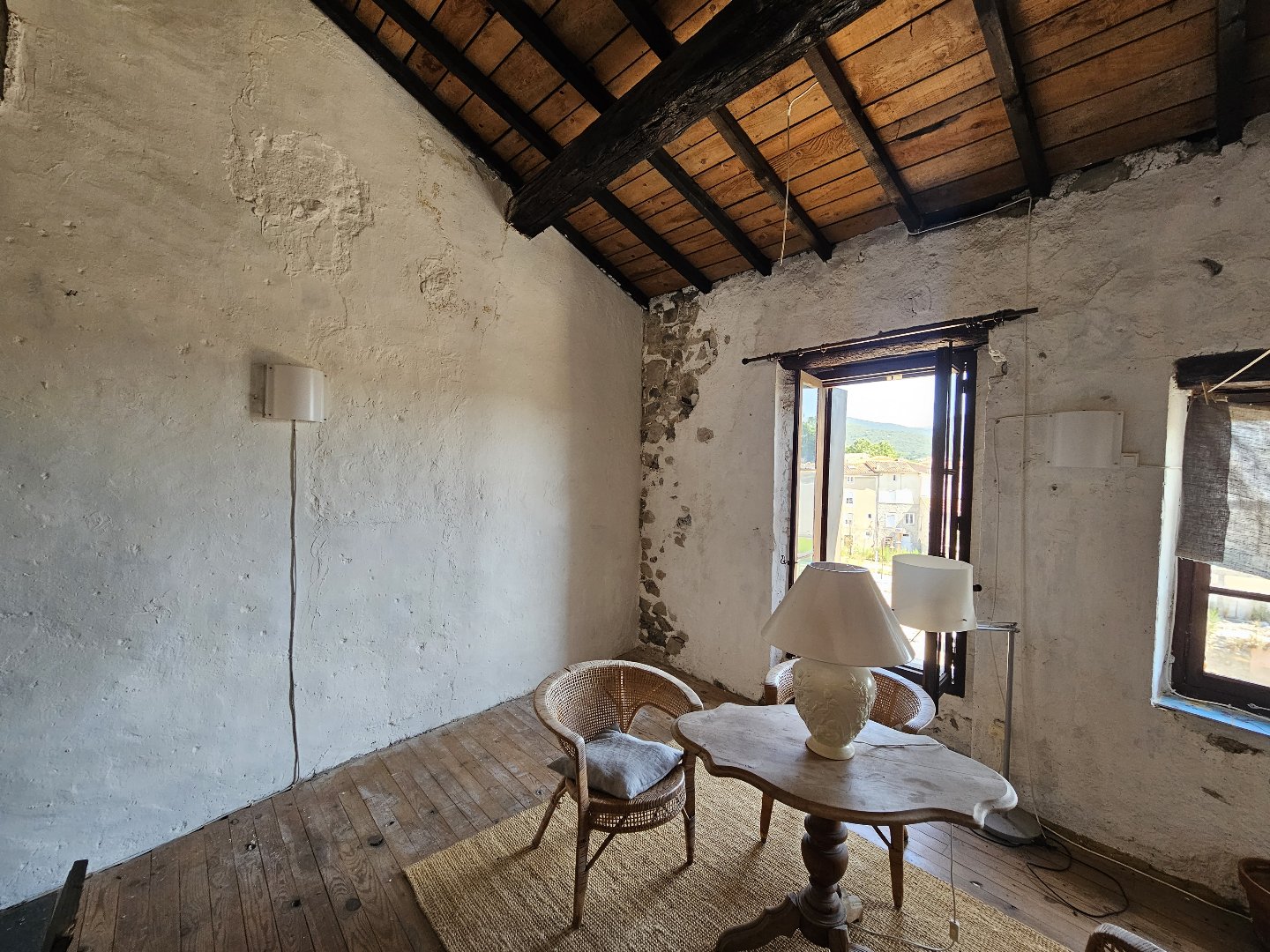 Proche centre ville et toutes commodités, maison de ville R+3 d'environ 101 m². Elle offre au rez-de-chaussée, une pièce d'entrée, et un séjour sous une jolie voûte en pierres. Au premier étage cuisine, cellier, et wc. Au deuxième étage, chambre et salle de bains avec wc. Au troisième étage une pièce à aménager de 15,5 m², et un débarras de 7 m². En sus, terrasse en toiture de 9,7 m² au 4ème étage, exposée nord-est, et offrant une vue panoramique sur les toits de Ganges, la grande place située derrière les Halles, et les collines environnantes.