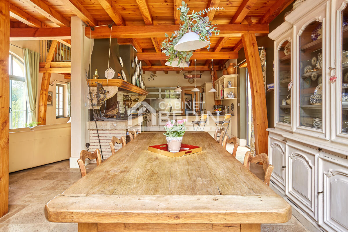 Le domaine s?étend en véritable écrin de nature : bassin de nage, parc paysager, mare privée, arbres fruitiers et truffiers, ainsi qu?un terrain constructible avec permis pour maison d?amis ou gîte, offrant de multiples perspectives. Classée en zone naturelle, la propriété est équipée d?un chauffage au sol et d?une pompe à chaleur (DPE B), alliant performance énergétique et confort raffiné.