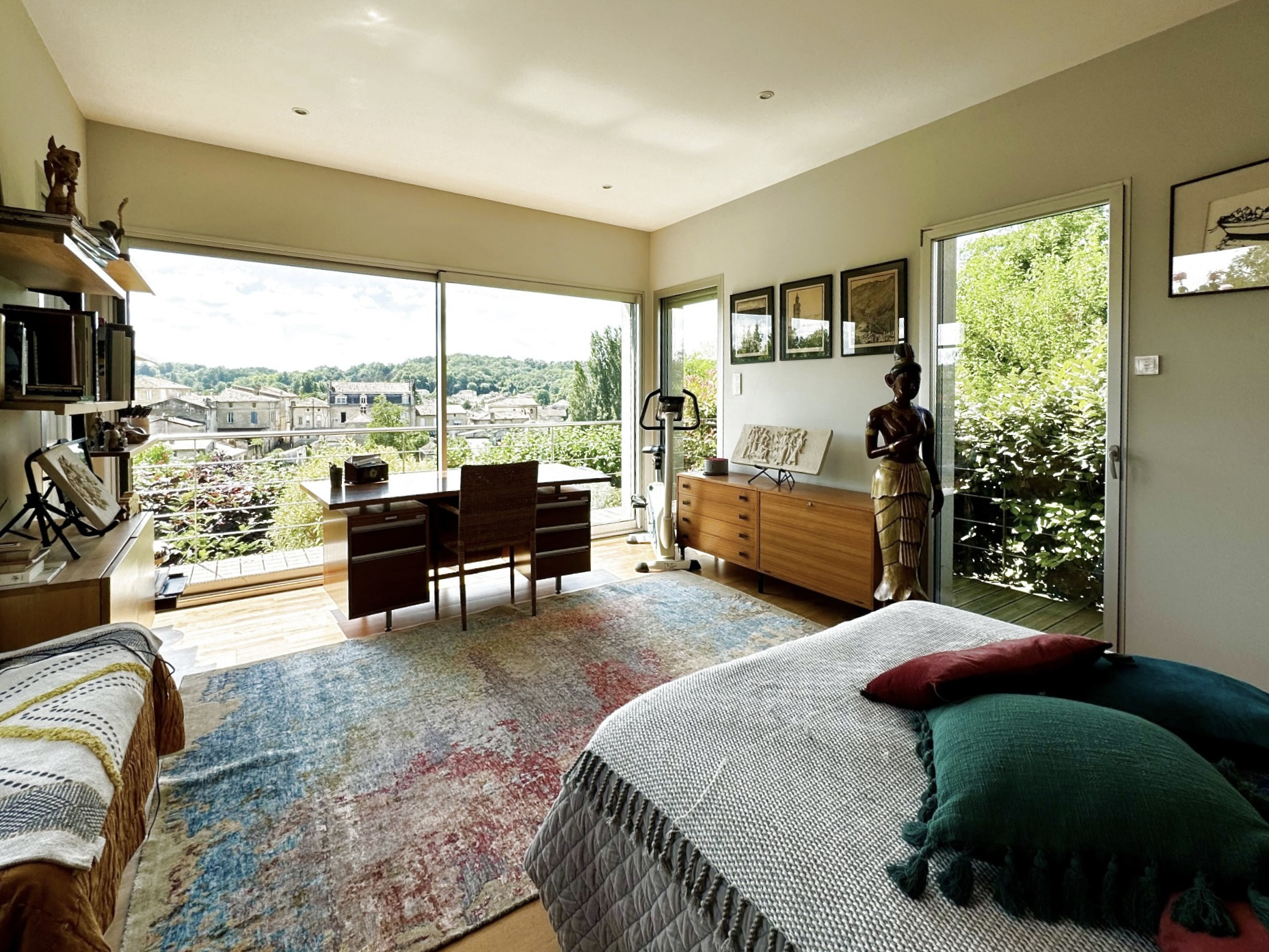 THALIA PATRIMOINE vous propose cette superbe villa de plain-pied à Branne, construite en 2013 avec des matériaux de qualité supérieure. La distribution et l'harmonie des volumes est remarquable.