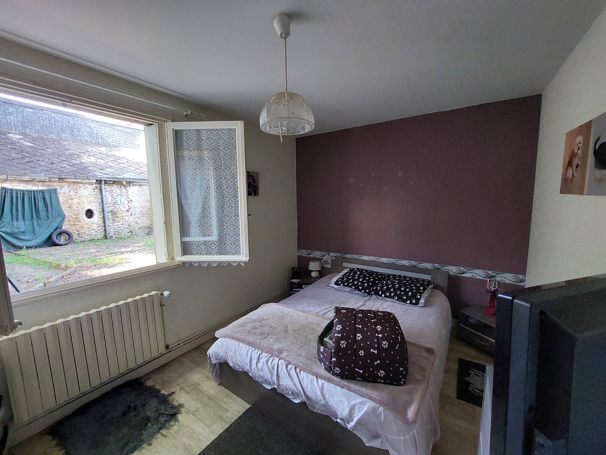 Au RDC, un appartement T3 comprenant : entrée sur couloir desservant cuisine, salon/séjour, 2 chambres, salle d'eau et WC. Cour clos de murs avec dépendance. Loué 550.92EUR + 18EUR de charges par mois.
