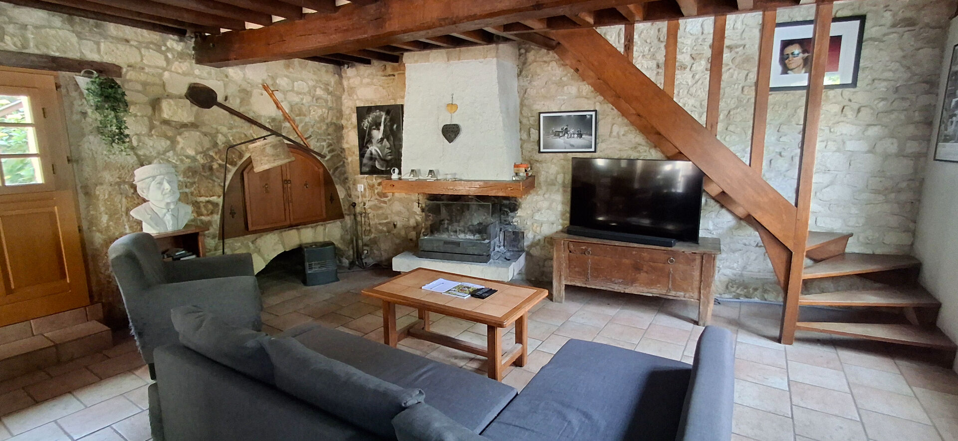 La maison seule vous offrira en rez-de-chaussée: une entrée, un wc, un double séjour avec sa cheminée à foyer ouvert et son four à pain ainsi qu'une cuisine aménagée et équipée.