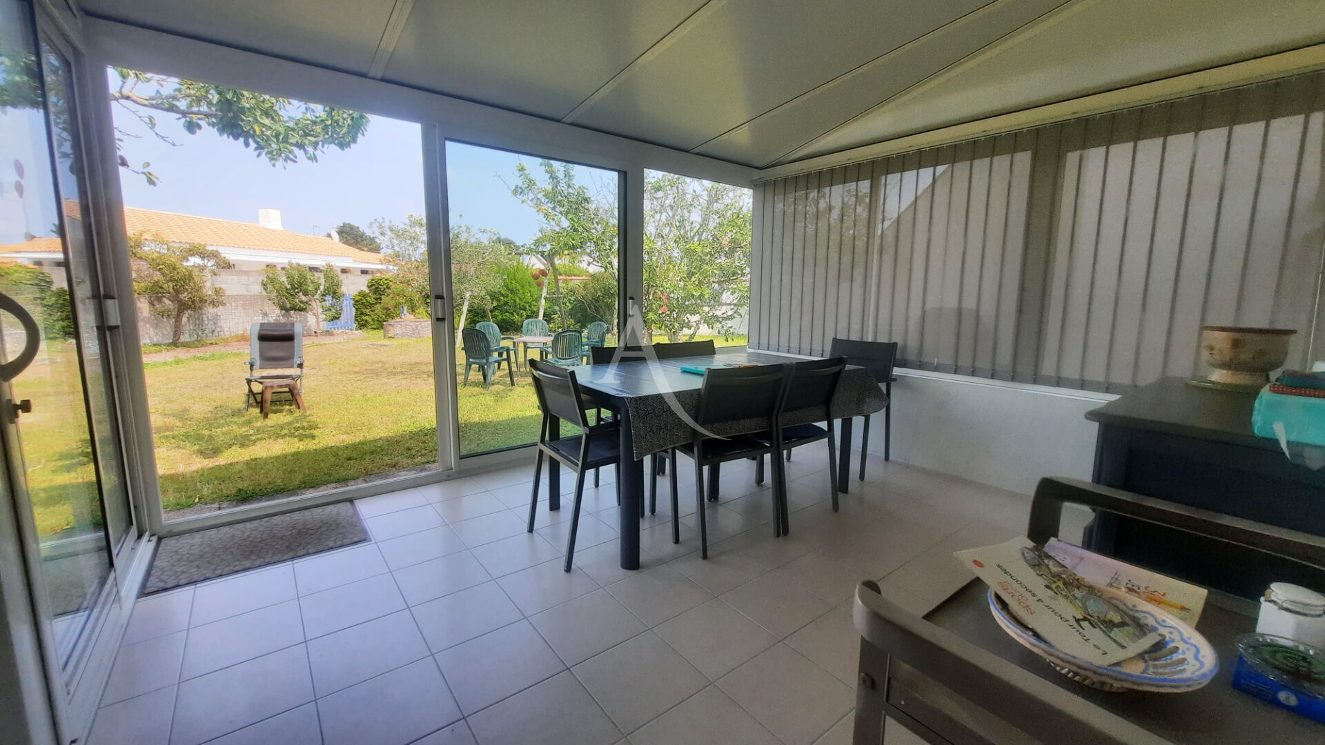 Dans le centre bourg et à 550 m de la plage de l'océan maison de plain pied avec magnifique jardin.