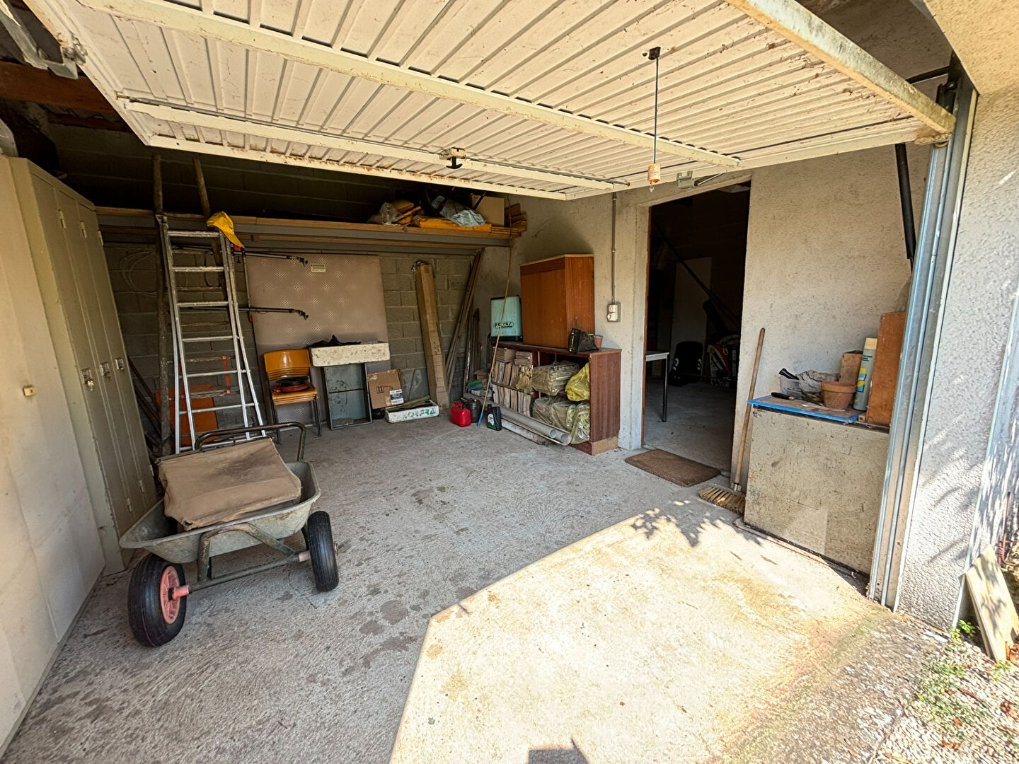 A l'arrière de la maison, une terrasse donnant sur un jardin clos et arboré au fond duquel se trouvent un deuxième garage et un atelier.