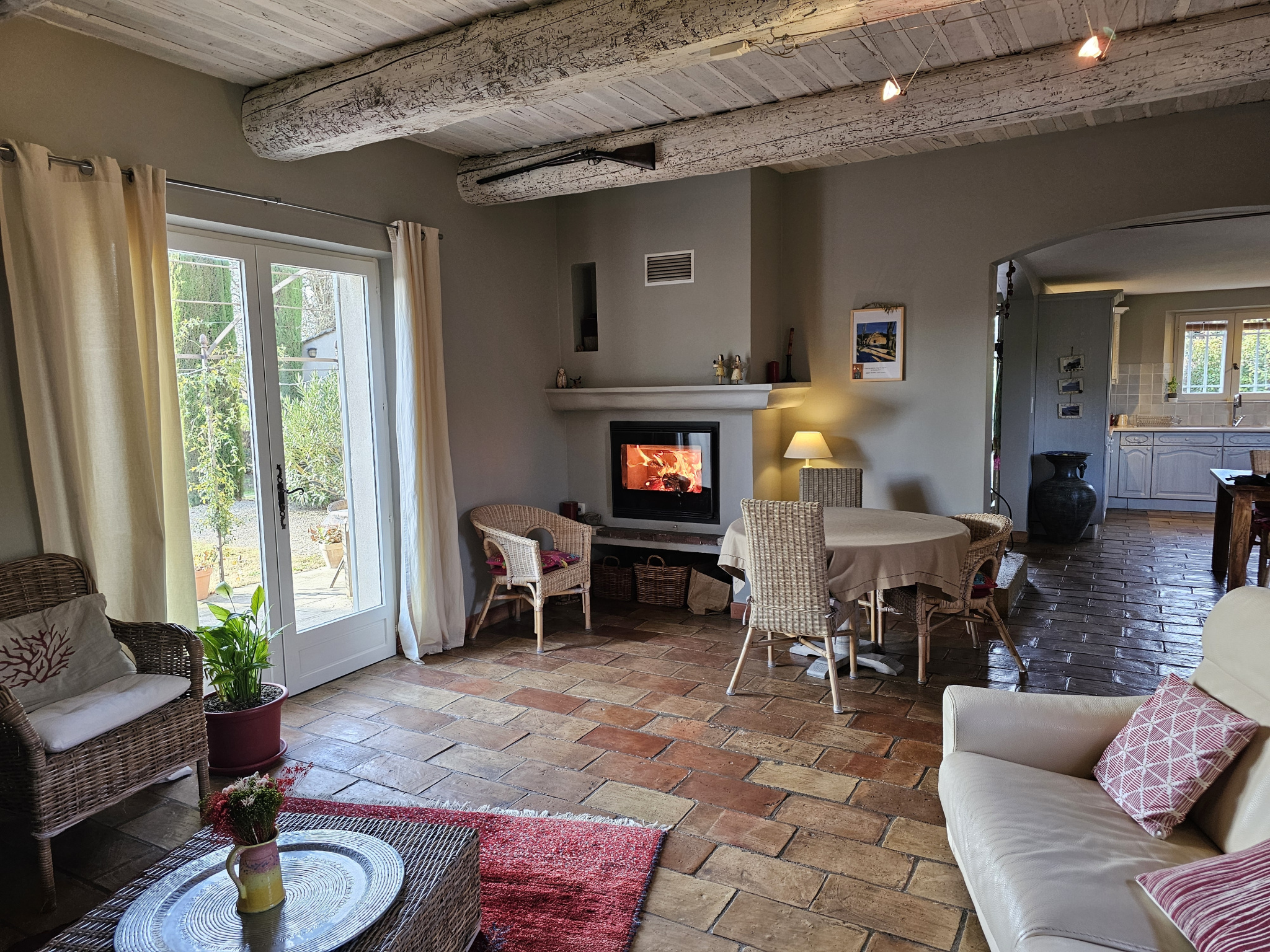 Elle se compose d'une entrée avec dégagement, un wc indépendant, un cellier, un séjour, avec cheminée insert, une cuisine ouverte aménagée et équipée, une chambre parentale avec sa salle de bains.