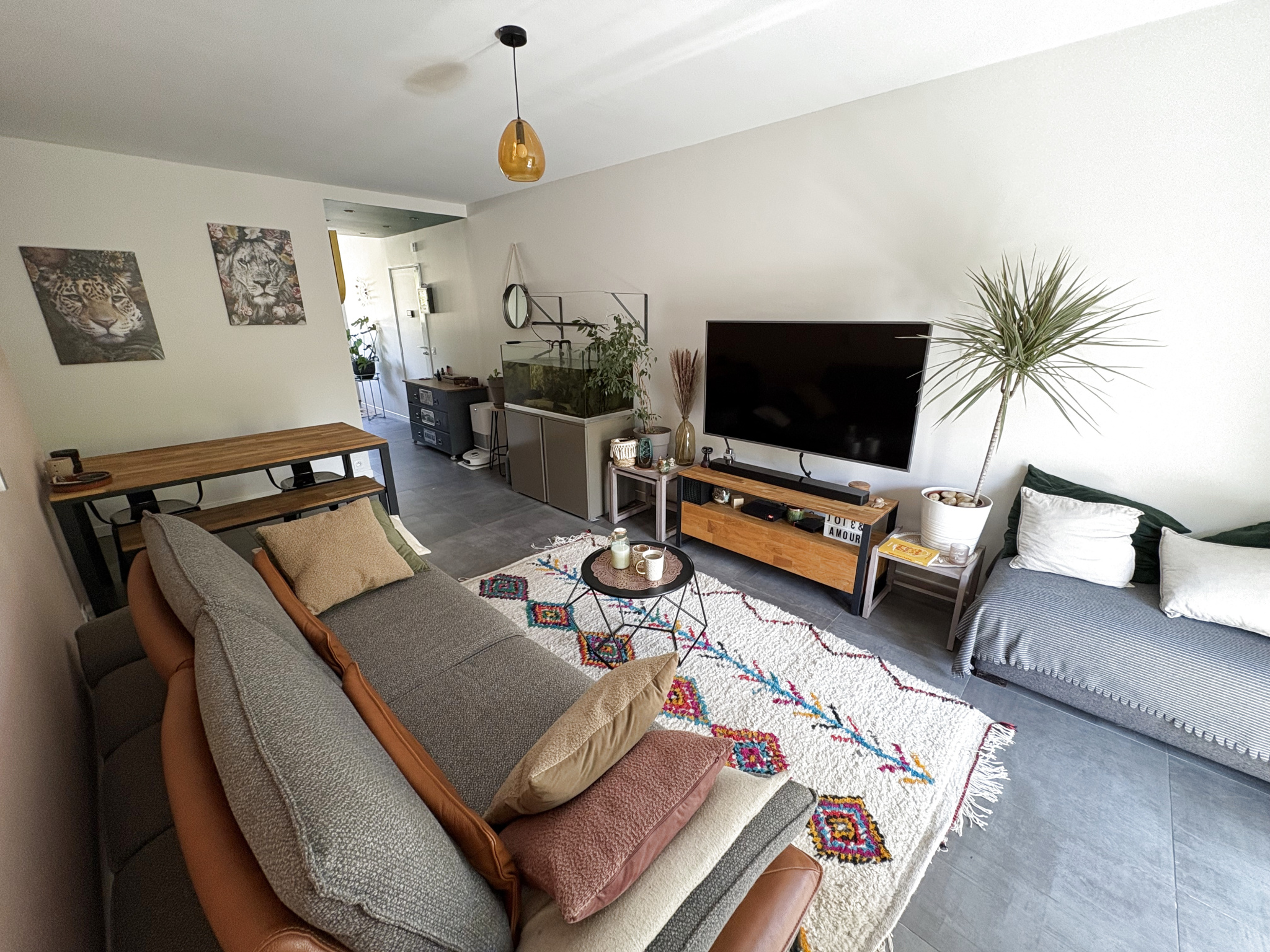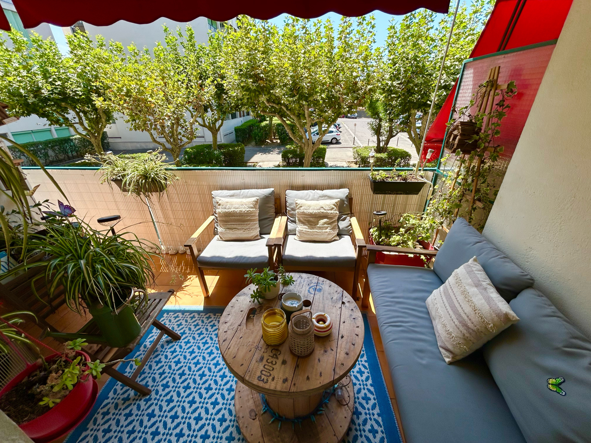 Une pièce de vie spacieuse et lumineuse, avec un salon ouvert sur un grand balcon filant de 10 m2, parfait pour se détendre ou recevoir.