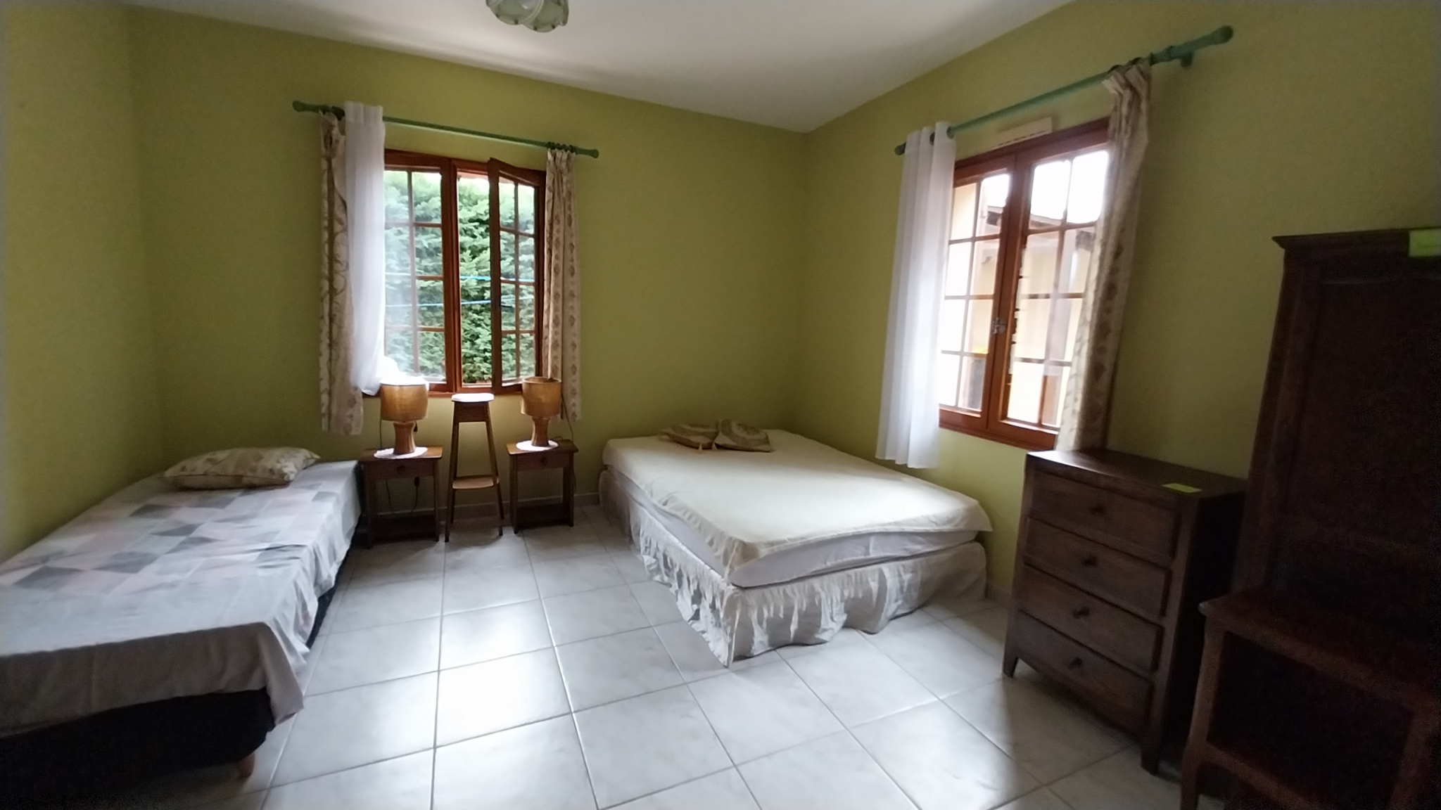 A l'étage un palier distribue 3 chambres dont une suite avec sa salle d'eau, ainsi qu'une salle de bains.