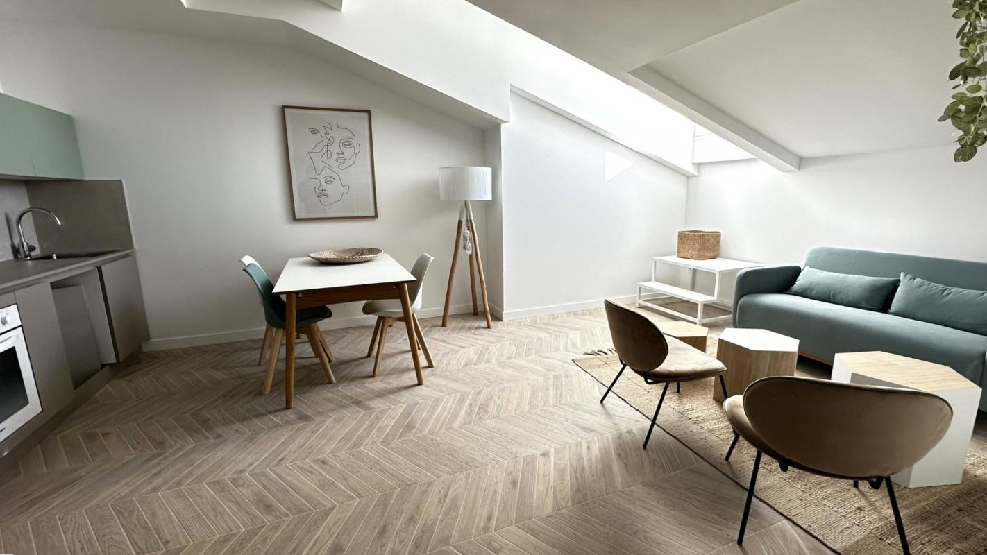 Venez découvrir cet appartement complétement atypique, sous les toits, avec une très belle hauteur sous plafond.