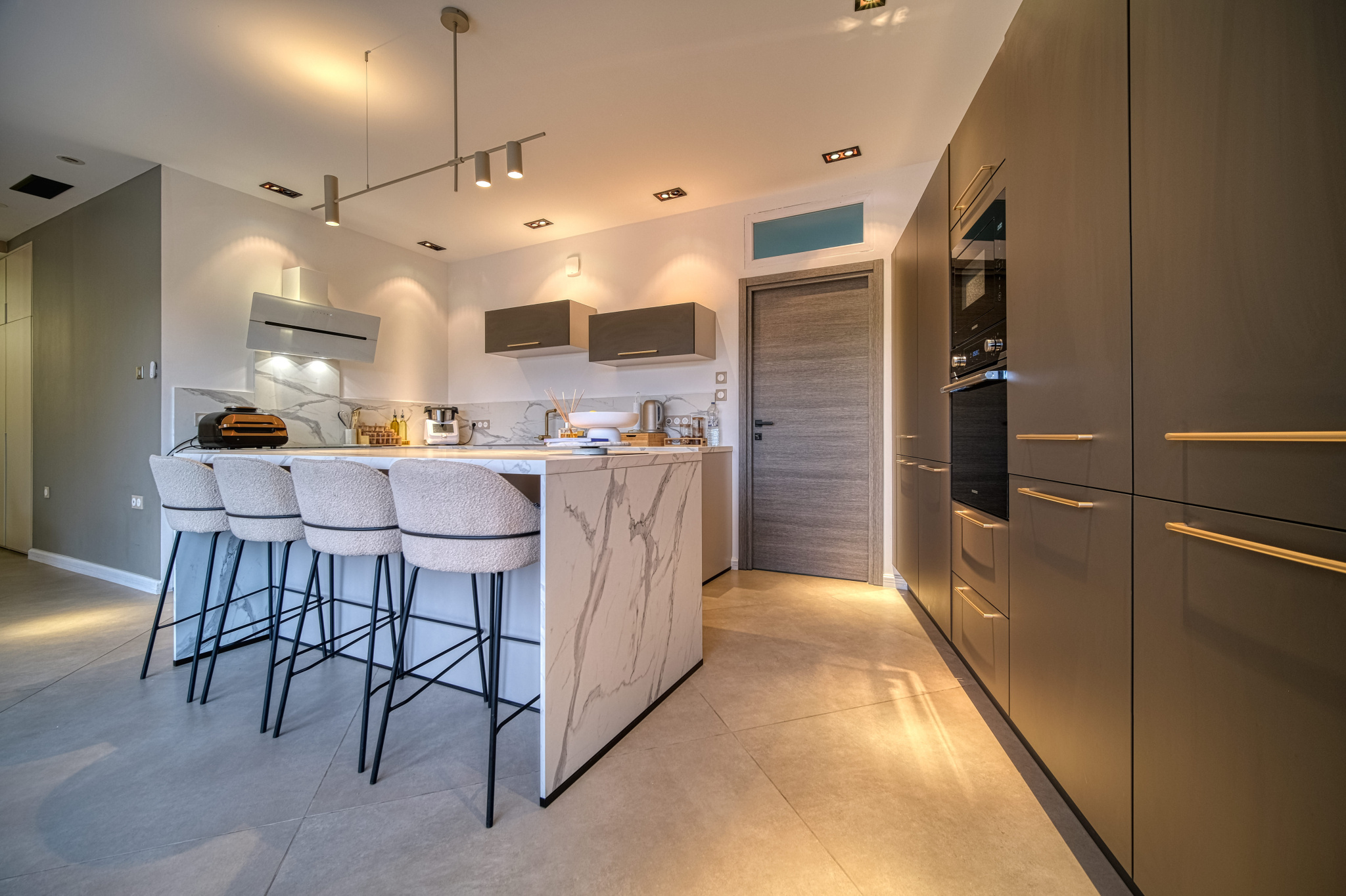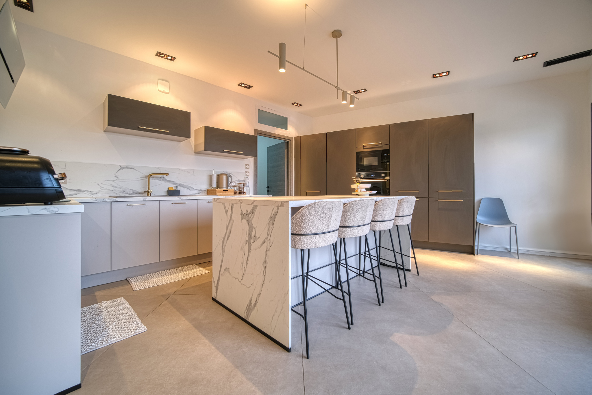 Les prestations sont à la hauteur du bien : chauffage au sol, climatisation gainable, baies vitrées à galandage, escaliers en marbre et granit, garde-corps en verre sécurit, éclairages LED muraux... chaque détail contribue à une expérience de vie résolument contemporaine et confortable.