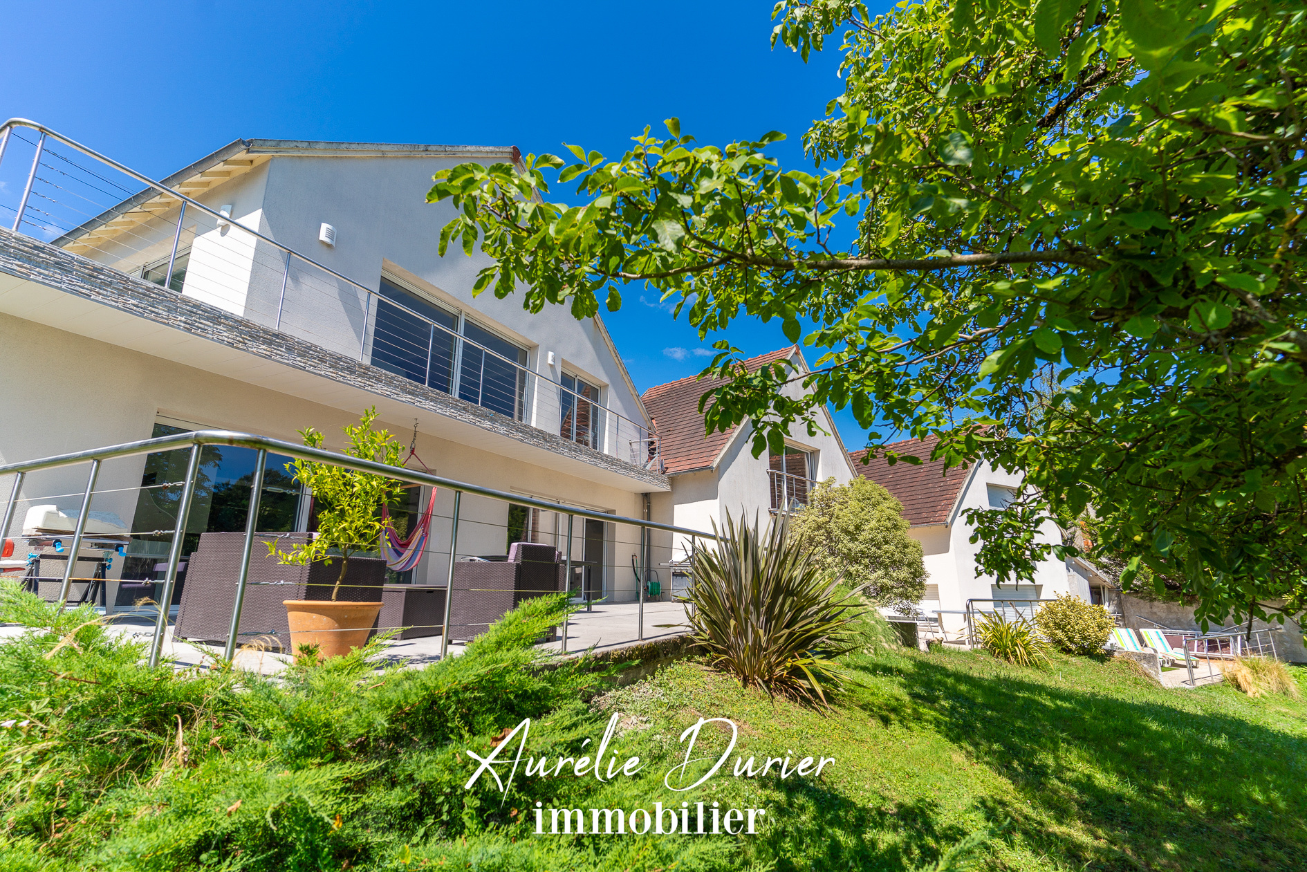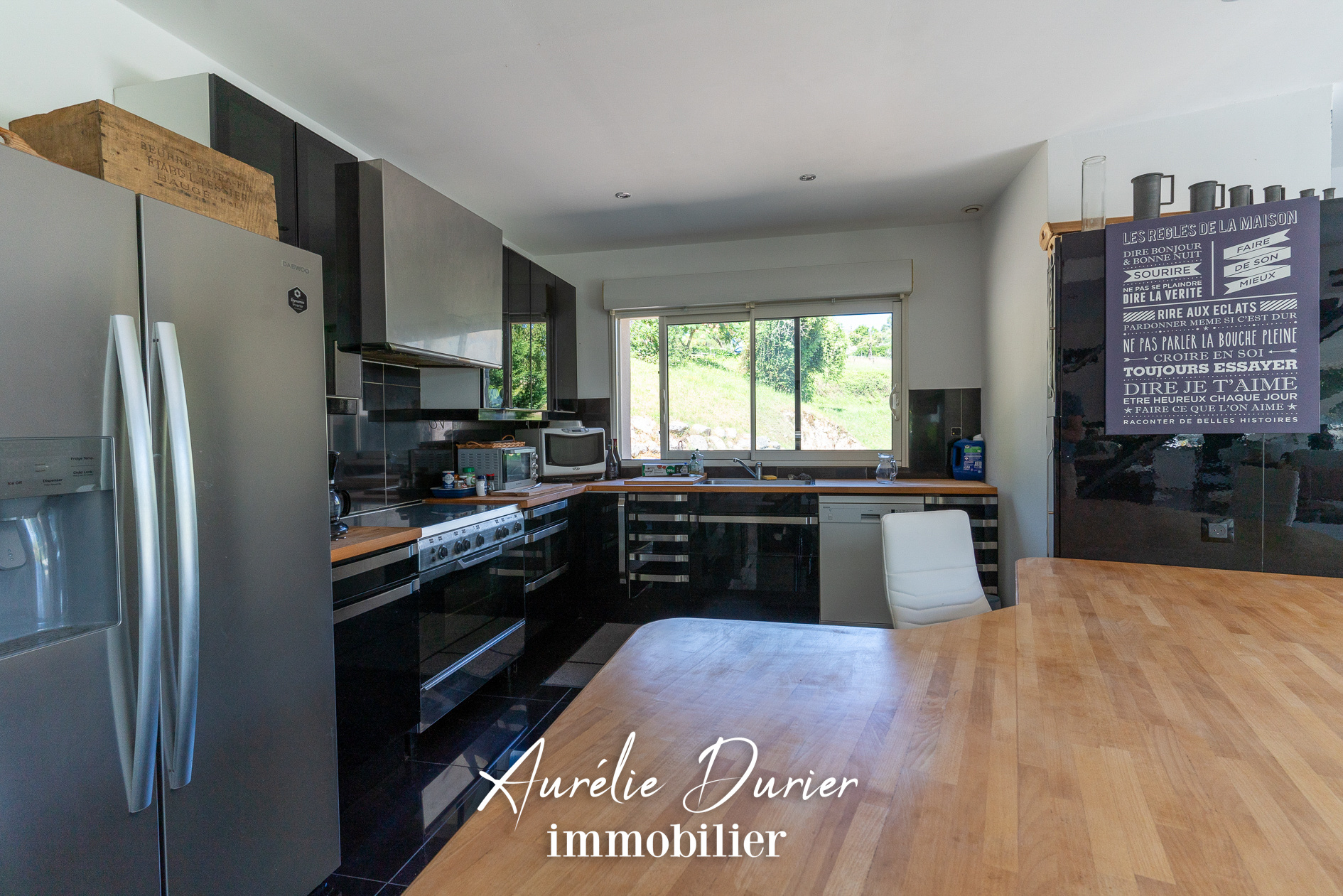 Cette contemporaine pensée par son propriétaire est aussi dôtée d'un grand garage et d'un espace atelier. Vous pourrez profiter du jardin avec ses arbres fruitiers sans trop de contraintes si vous cherchez une maison facile à entretenir.