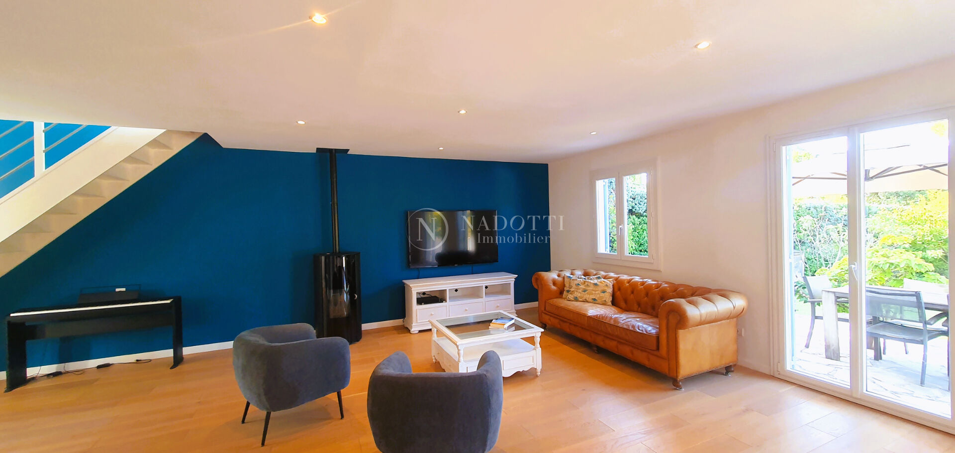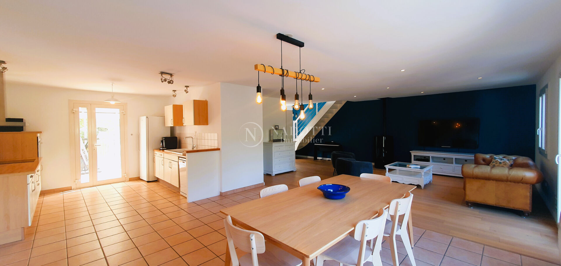 On the hill of Velleron, in a magnificent Provençal village, in a quiet environment, the Nadotti Immobilier agency in Isle sur la Sorgue offers you a pleasant, very bright 190 sqm villa with a garage and a 1185 sqm enclosed and wooded garden with the possibility of adding a swimming pool. The house is composed on the ground floor of a large living room with an open kitchen, with a surface area of approximately 70 sqm. Light floods in with unobstructed views of the garden and access to a south-facing terrace. On this same level, there is also a master suite with a shower room, toilet, and an office, as well as a second bathroom with a bathtub, shower, and toilet. The upper floor, reserved exclusively for the sleeping area, is arranged around 4 large bedrooms with dressing rooms and toilets. Outbuildings: a garage and a storeroom. In a haven of peace, without being isolated, this house is able to accommodate a large family but is also suitable for a couple.