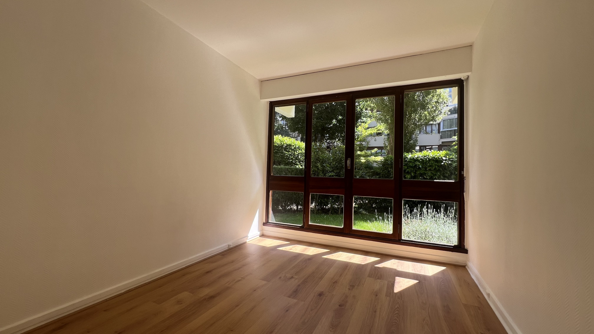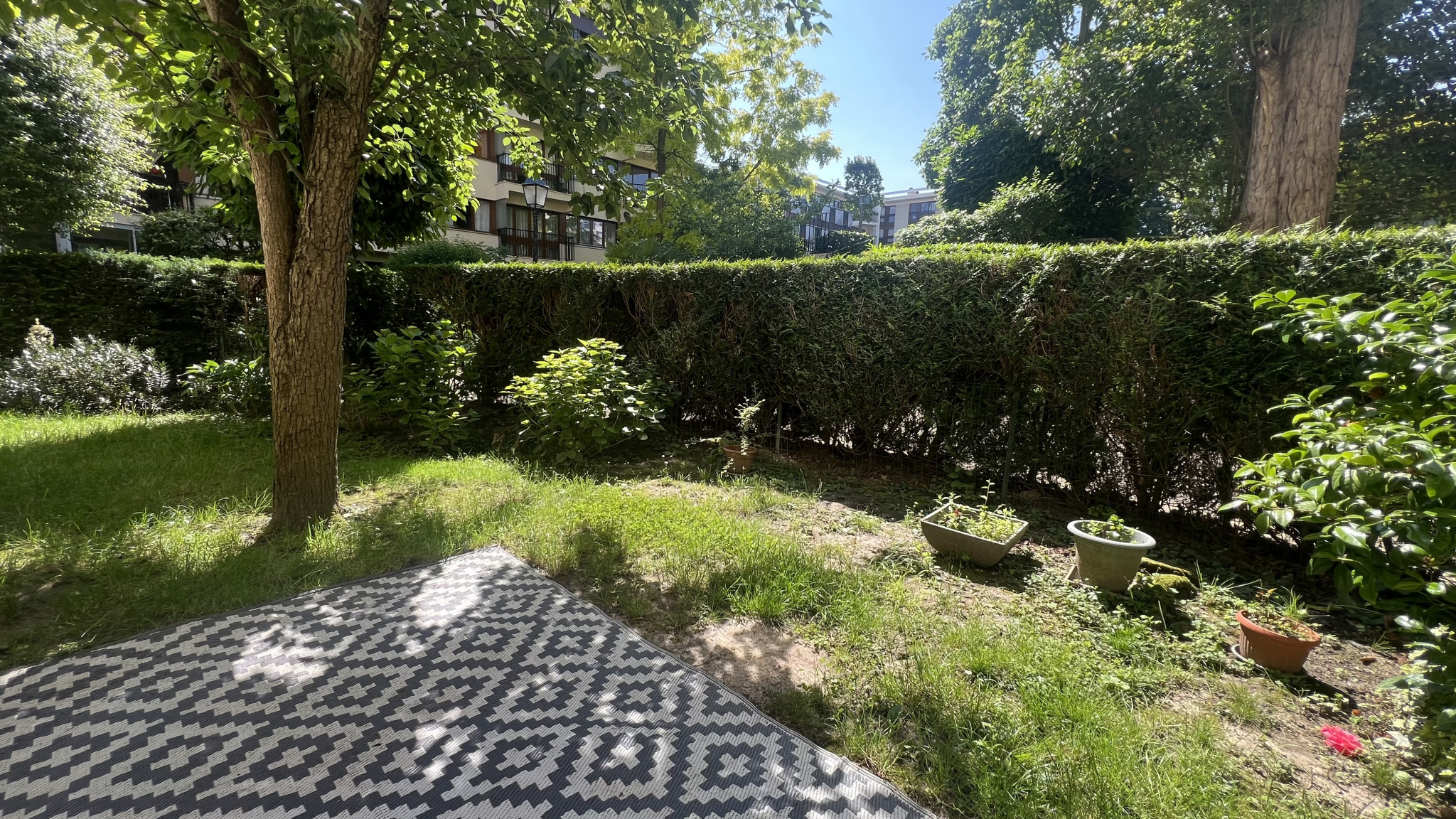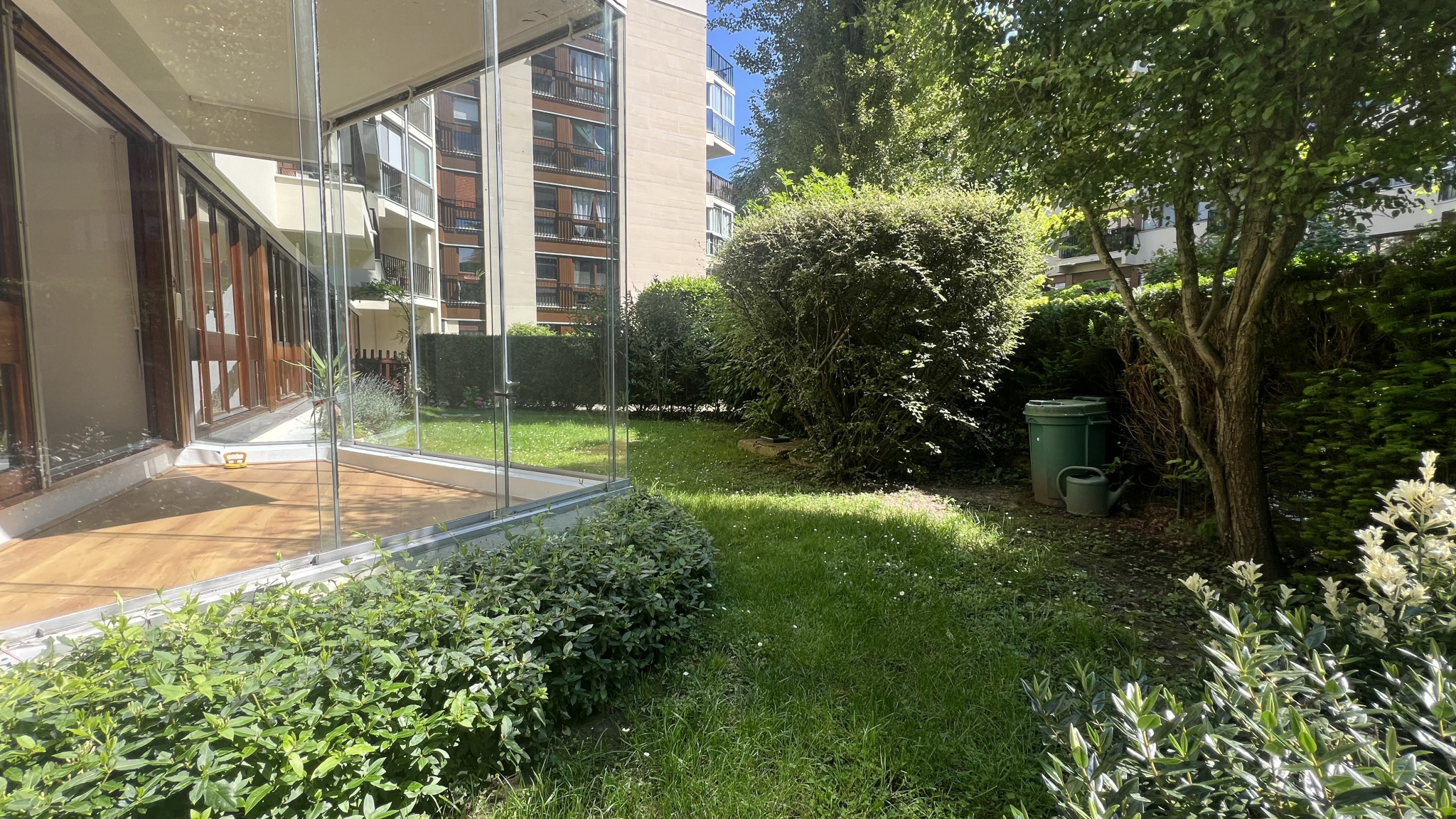 Bel appartement de 84m2 avec son jardin comprenant : une entrée, une cuisine fermée et aménagée, un grand séjour prolongé par une loggia donnant sur le jardin.