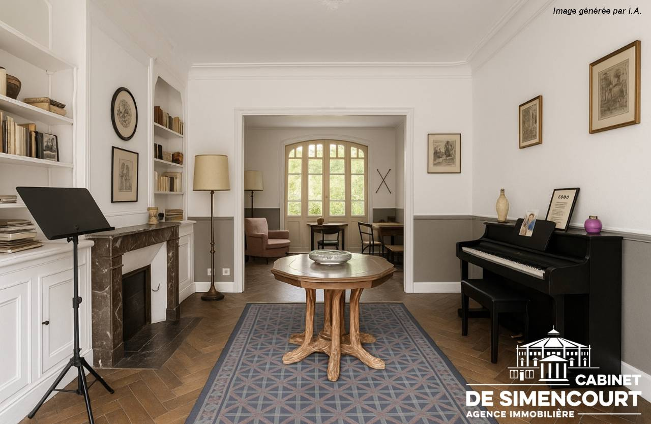 Le Cabinet de SIMENCOURT vous propose une MAISON BOURGEOISE avec jardin qui a gardé tout son charme, plusieurs cheminées, de belles hauteurs sous plafond, des moulures, des vitraux et planchers.