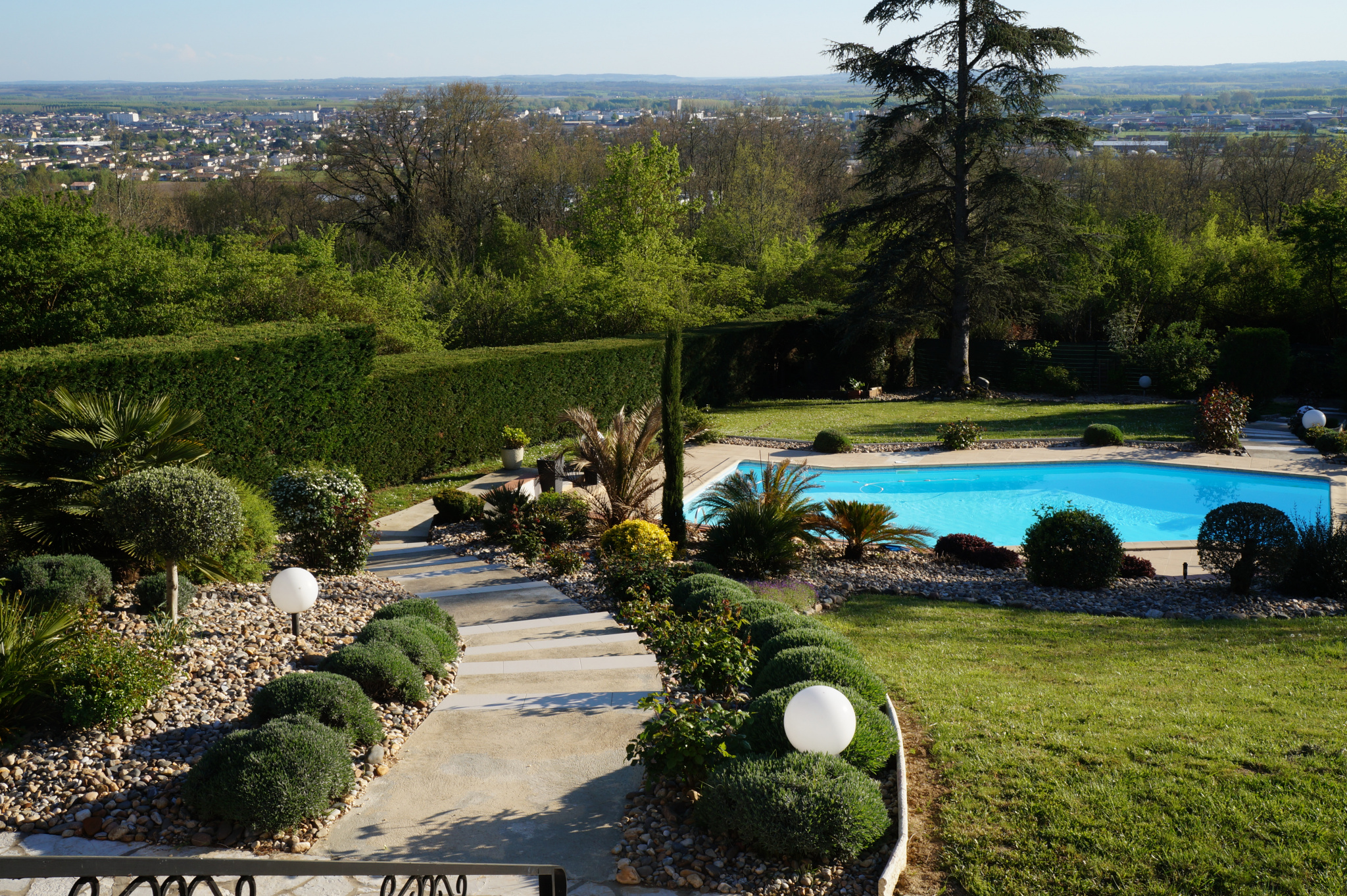 Magnifique MAISON rénovée située sur côteaux avec vue exceptionnelle sur Marmande, à 2 minutes du centre ville. Superbe hall d'entrée desservant une vaste cuisine équipée ouverture par verrière sur un salon/séjour offrant une sortie sur la terrasse et une vue sur la piscine (en résine) dotée d'un beau jardin. 4 chambres, 2 salles d'eaux, un bureau de 30 m2, cellier, dressing et sans oublier un grand garage de 90m2. D'importants travaux viennent d'être réalisés en 2009 pour votre confort : réfection de la toiture, électricité, carrelage, isolation, double vitrage, salle d'eaux, accès goudronné..etc. Jardin arboré et fleuri de 3535m2 clos. Visitez sans tarder cette belle maison rare sur le secteur. Ducos immobilier Réf 4333