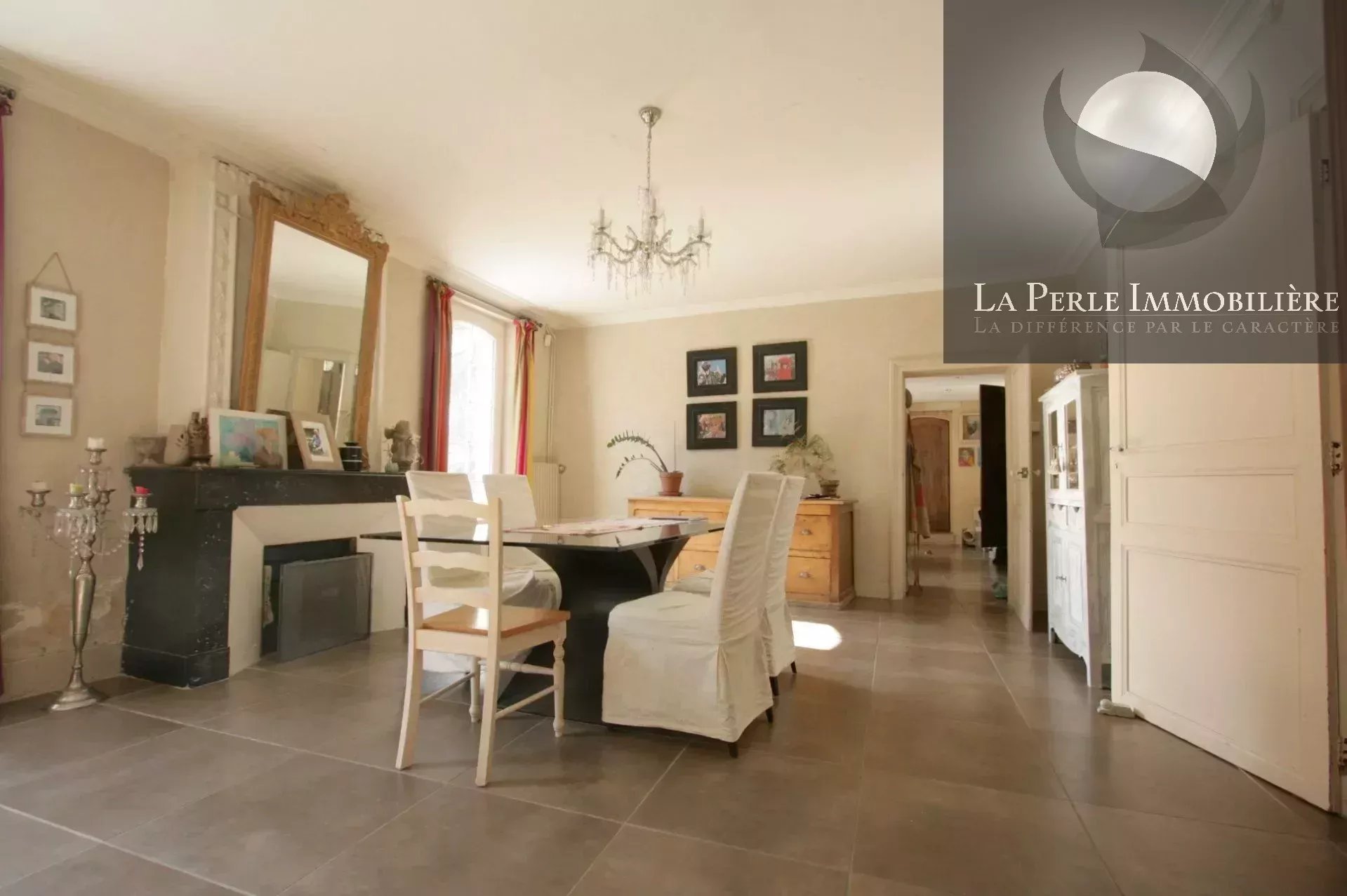 Maison principale (370m² habitables) : 7 pièces principales avec au RDC : Salon, salle à manger avec accès sur la terrasse extérieure, cuisine équipée avec remise, buanderie, bureau ou chambre, toilettes.