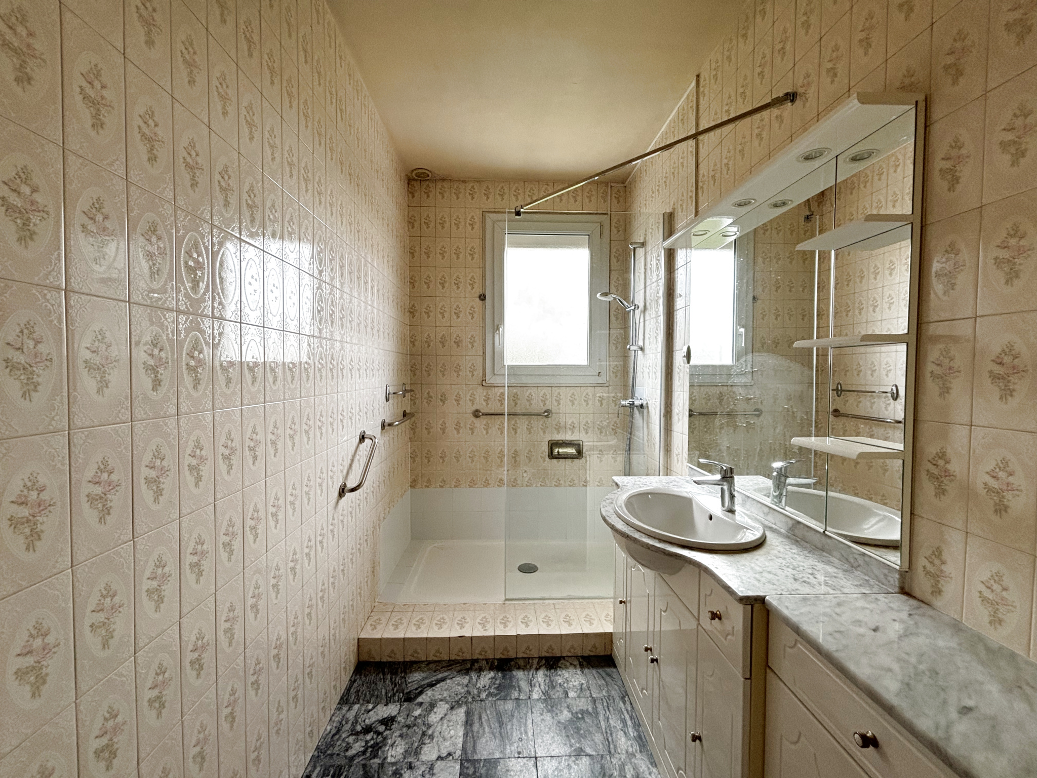 Au rez-de-jardin, vous trouverez une entrée, une chambre, une chaufferie/buanderie et un garage double de plus de 50 m2. À l'étage, la maison dispose d'un séjour de 26 m2 ouvrant sur un balcon, d'une cuisine indépendante, de trois chambres, d'une salle d'eau et de toilettes séparées.