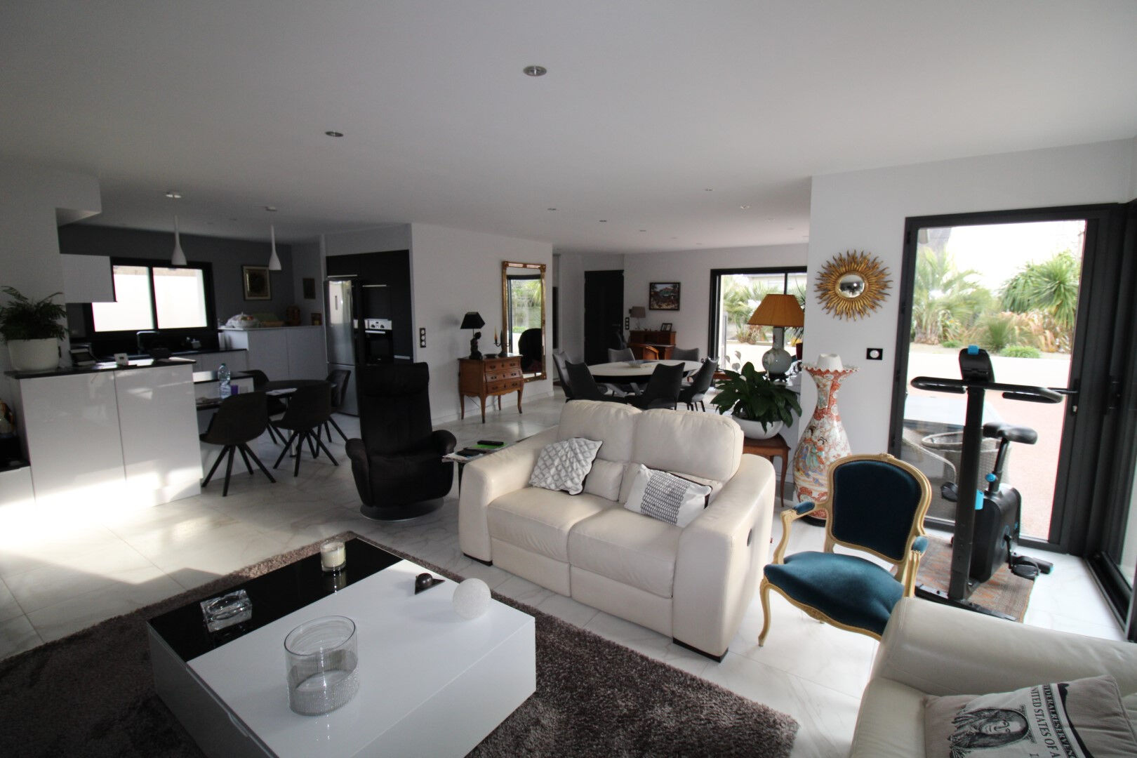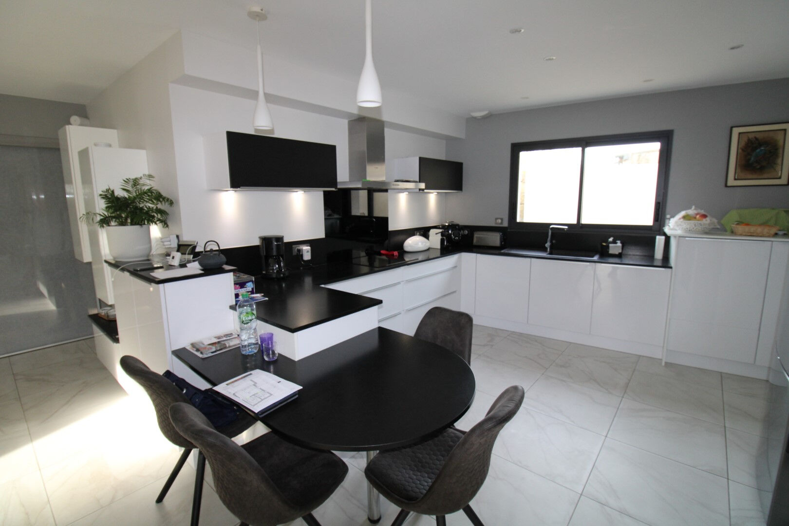 Située à 450 mètres des commerces, venez prendre possession de cette somptueuse maison de ville contemporaine de plain pied bâtie en 2019. Dès l'entrée vous serez séduit par la luminosité de sa pièce de vie de 73 m² avec cuisine ouverte toute équipée, un large couloir dessert une suite parentale équipée d'une salle d'eau et d'un dressing, 2 autres chambres avec placard, un WC avec lave mains, une deuxième salle d'eau. Attenant à la cuisine, une arrière cuisine puis un grand garage de 46 m². Bâtie par un maître d'oeuvre réputé sur le secteur, les prestations sont d'un très bon niveau: plancher chauffant par Géothermie, ballon thermodynamique, menuiseries à galandage avec volets roulants électrique, garage avec porte motorisée de 5 mètres. Etat exceptionnel, à visiter .