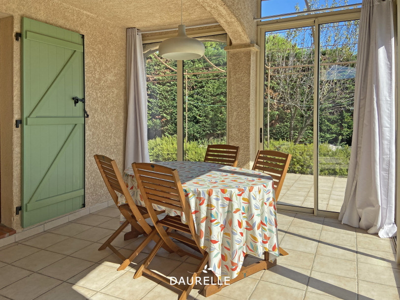À l'extérieur, tout est réuni pour savourer pleinement les beaux jours provençaux :une piscine de 9,40 x 4 m, installée en 2014 et équipée d'un volet électrique sécurisé, s'intègre parfaitement dans ce jardin paysagé. Un garage de 17 m2 ainsi qu'un cellier extérieur de 9 m2 viennent compléter les prestations.