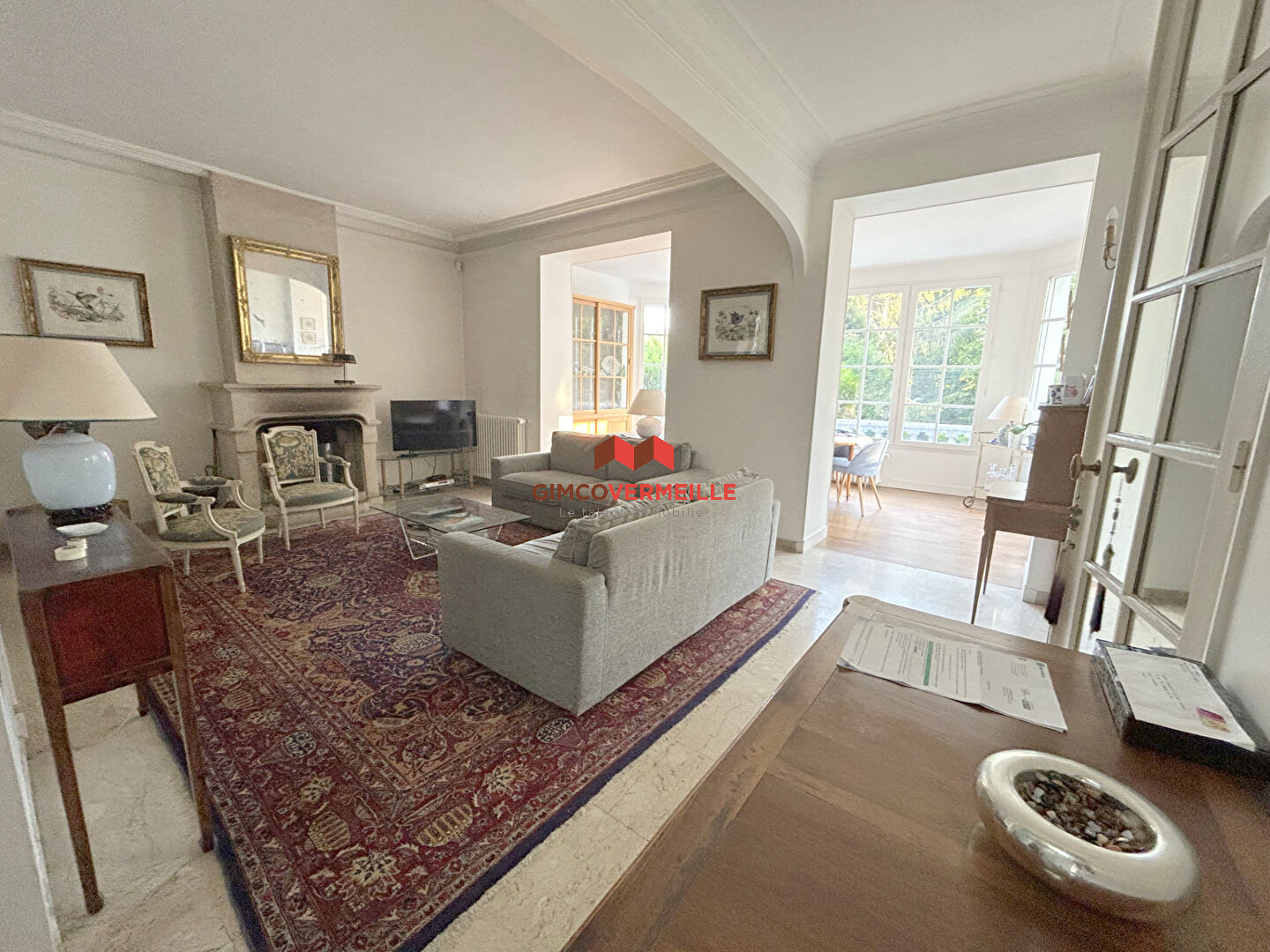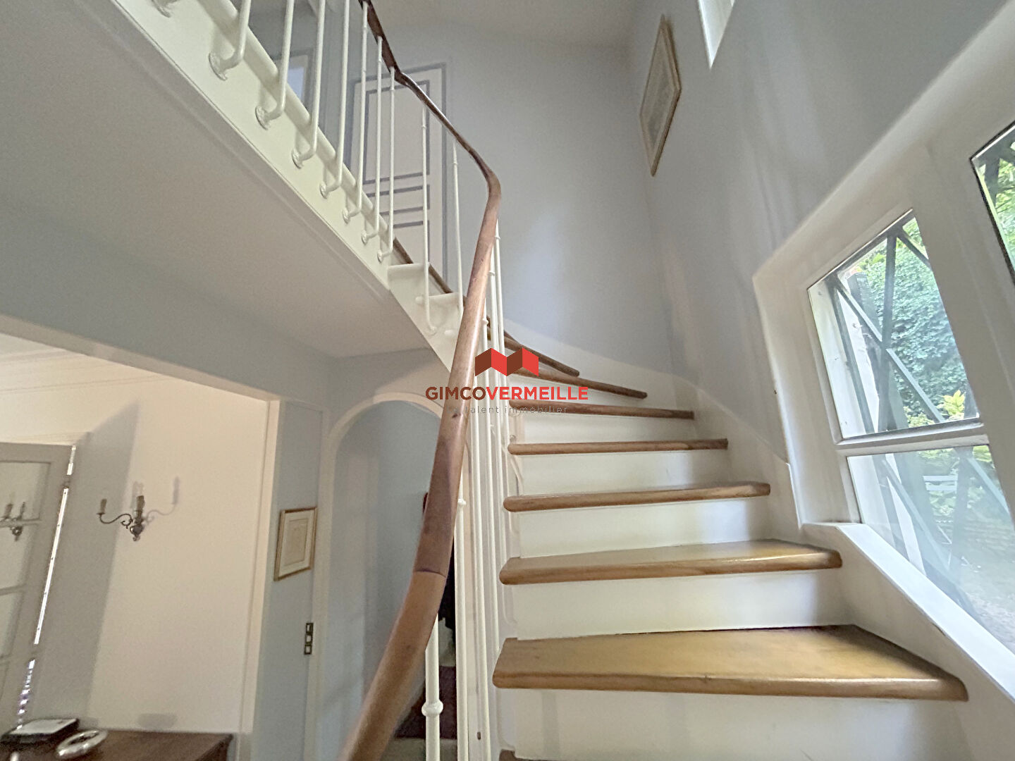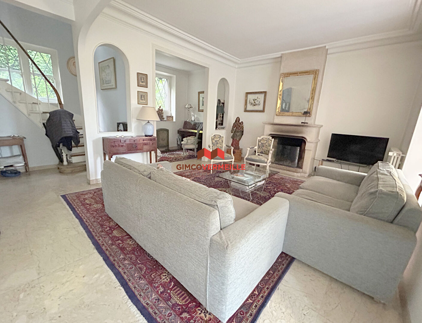 RARE ! Venez découvrir cette magnifique maison de Maître fin XIX° située proche gare SNCF (ligne L), écoles maternelles/primaires, commerces et forêt, comprenant une entrée, un séjour triple cheminée (dont salon de musique/lecture et salle à manger en bow window) donnant sur terrasse et jardin sud, une grande cuisine équipée avec accès terrasse sud ; à l'étage, un palier desservant une chambre avec salle de bains/douche et WC, et 3 autres chambres ; au 2° étage, un palier desservant 2 chambres, un bureau, une "family room" ainsi qu'une petite salle de bains et WC. Au sous sol semi enterré, une cave à vin, une buanderie/lingerie/chaufferie, un atelier. Un grand garage complète ce bien. Le tout sur 583 m² de terrain.