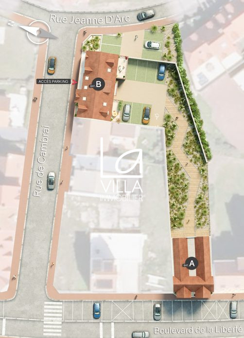 Cette charmante résidence de 7 logements conjugue confort et authenticité tout en respectant l'architecture des villas traditionnelles d'Ambleteuse. L'accès des véhicules s'opère par le bâtiment rue de Cambrai qui propose un local vélo, 4 garages et 7 places aériennes aménagées dans un espace paysager qui évoque les dunes environnantes.