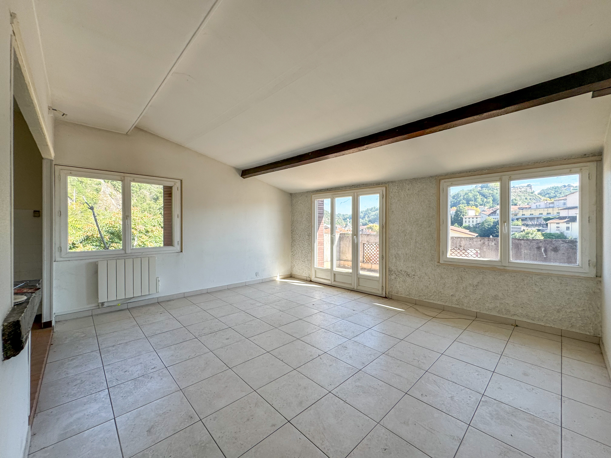 Venez découvrir cet appartement T2 avec vue extraordinaire sur la ville de Vienne !! Coup de coeur assuré... Ce logement d'environ 43,03 m2 habitables se situe au sein d'une copropriété sans ascenseur édifiée dans les années 70, situé au dernier étage de l'immeuble, l'accès se fait néanmoins depuis la Montée de l'hopital et permets un accès facilité avec seulement quelques marches.