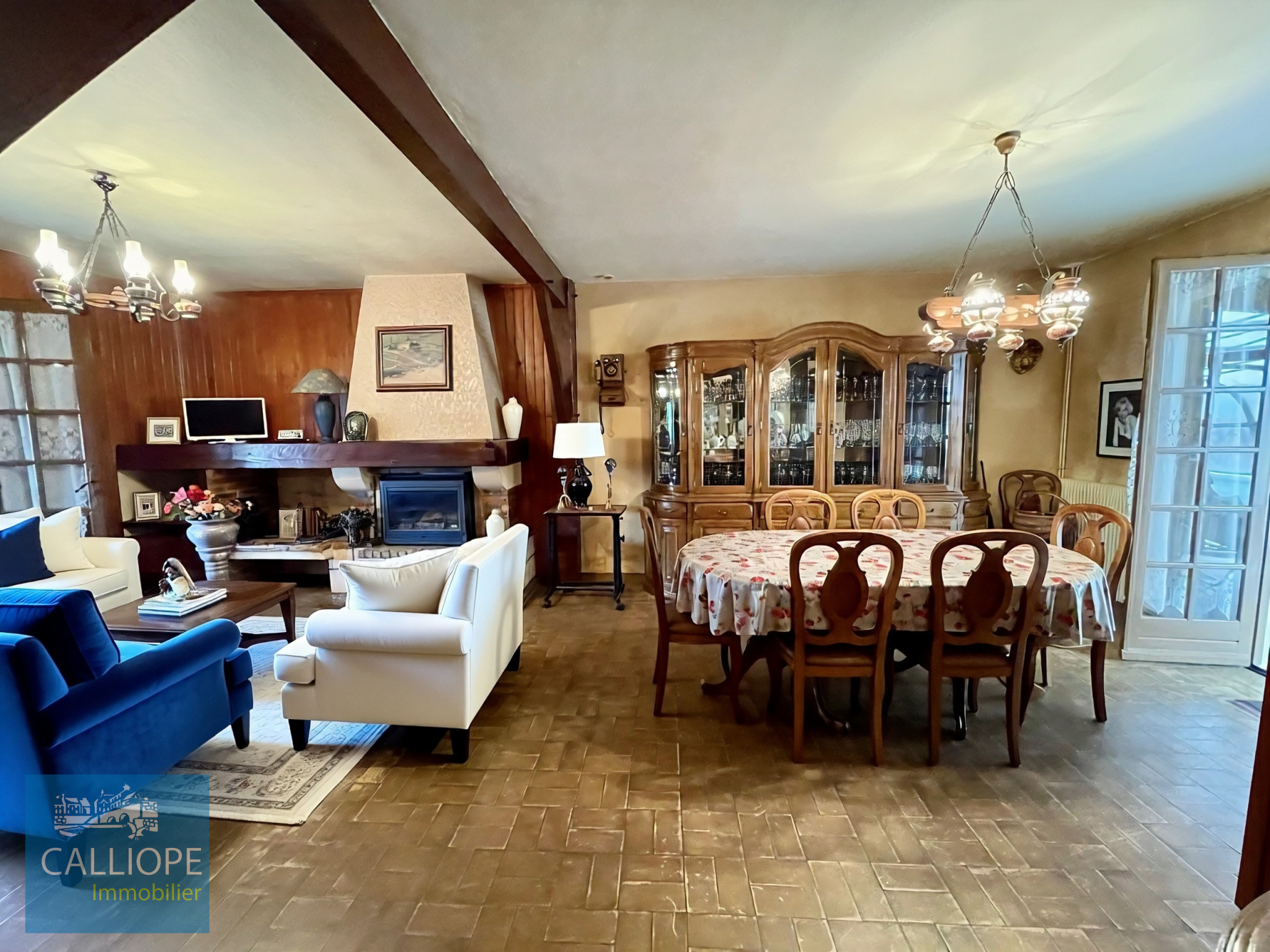 Maison de 143 m2 à rafraîchir : elle se compose d'un séjour traversant, d'une cuisine équipée (possibilité cuisine Us), de 3 chambres, salle de bains, d'une véranda ainsi que de 2 garages situés de chaque coté de la maison avec espace buanderie (possibilité de faire un bureau / chambre d'amis)