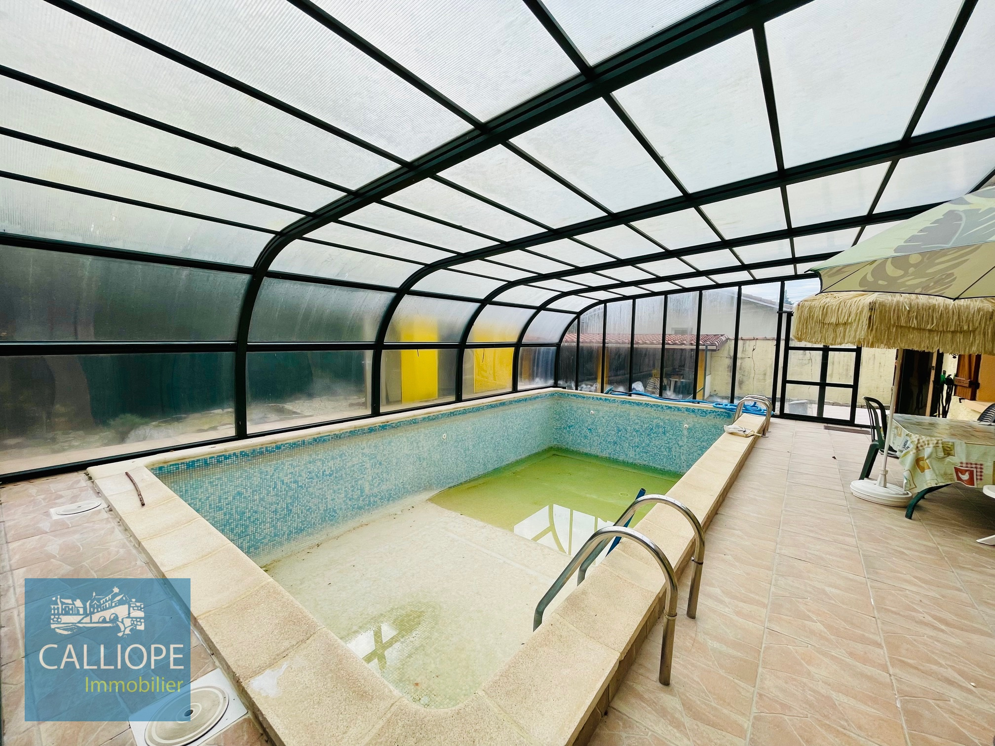 Le tout est implanté sur un joli terrain de 1.800 m2. Atout rare : une piscine couverte vous permettra de profiter de baignades en toutes saisons.