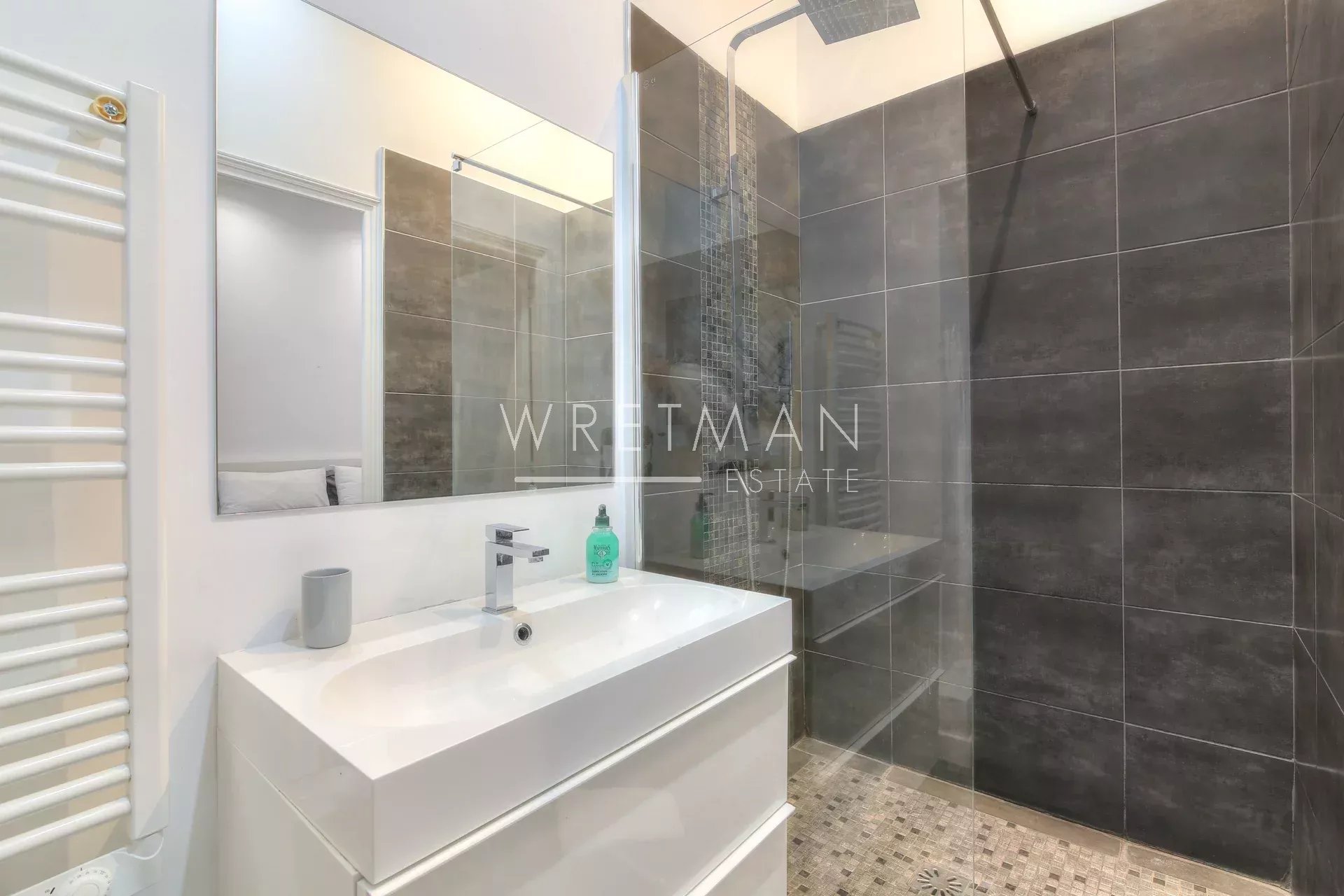 Ce bien comprend un large hall d’entrée, un lumineux séjour avec cuisine ouverte offrant une magnifique vue mer, une chambre maitre avec salle d’eau attenante et wc, une deuxième chambre, une deuxième salle d’eau, et un wc indépendant. Climatisation réversible.