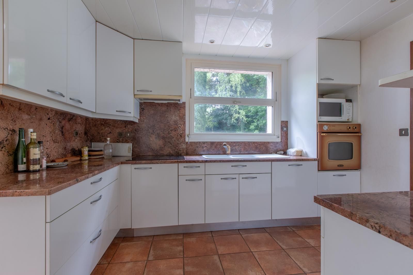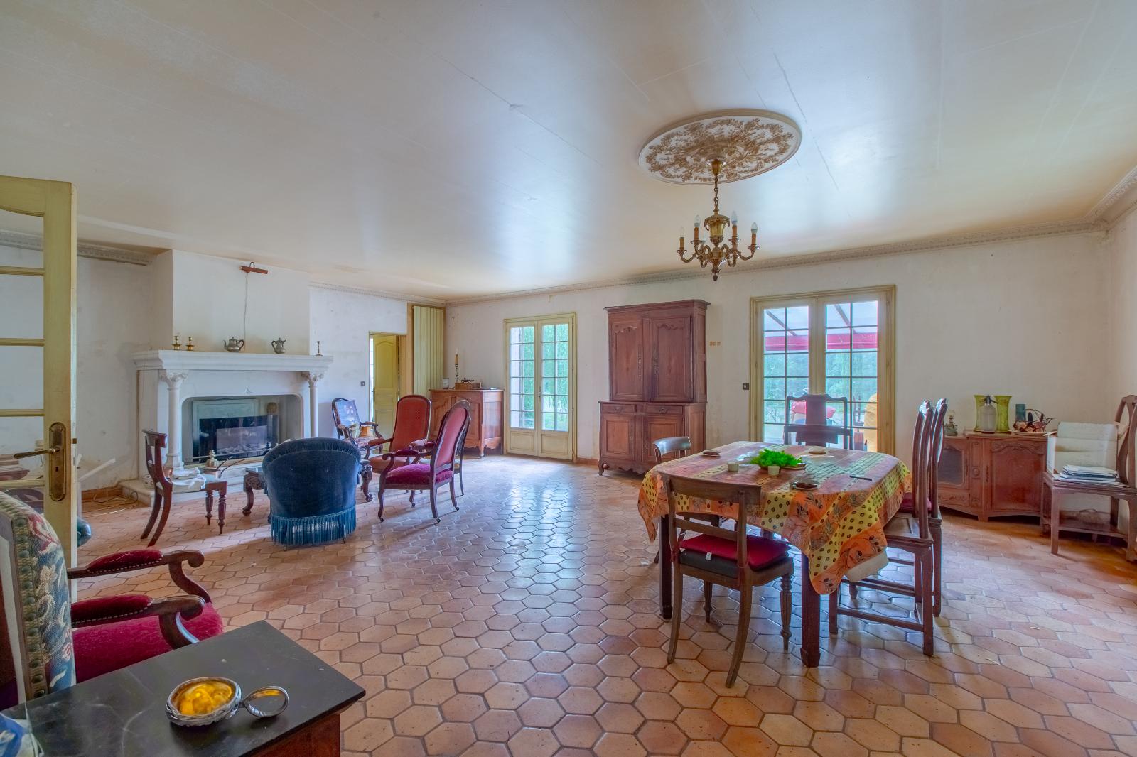 Le salon, d'une superficie de 57 m², est un véritable havre de paix, baigné de lumière grâce à son orientation plein ouest. Imaginez-vous y passer des moments conviviaux en famille ou entre amis, tout en profitant de la vue dégagée sur le jardin. La cuisine, entièrement équipée, est prête à accueillir vos talents culinaires et à faire de chaque repas un moment de partage.
