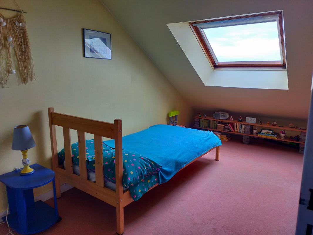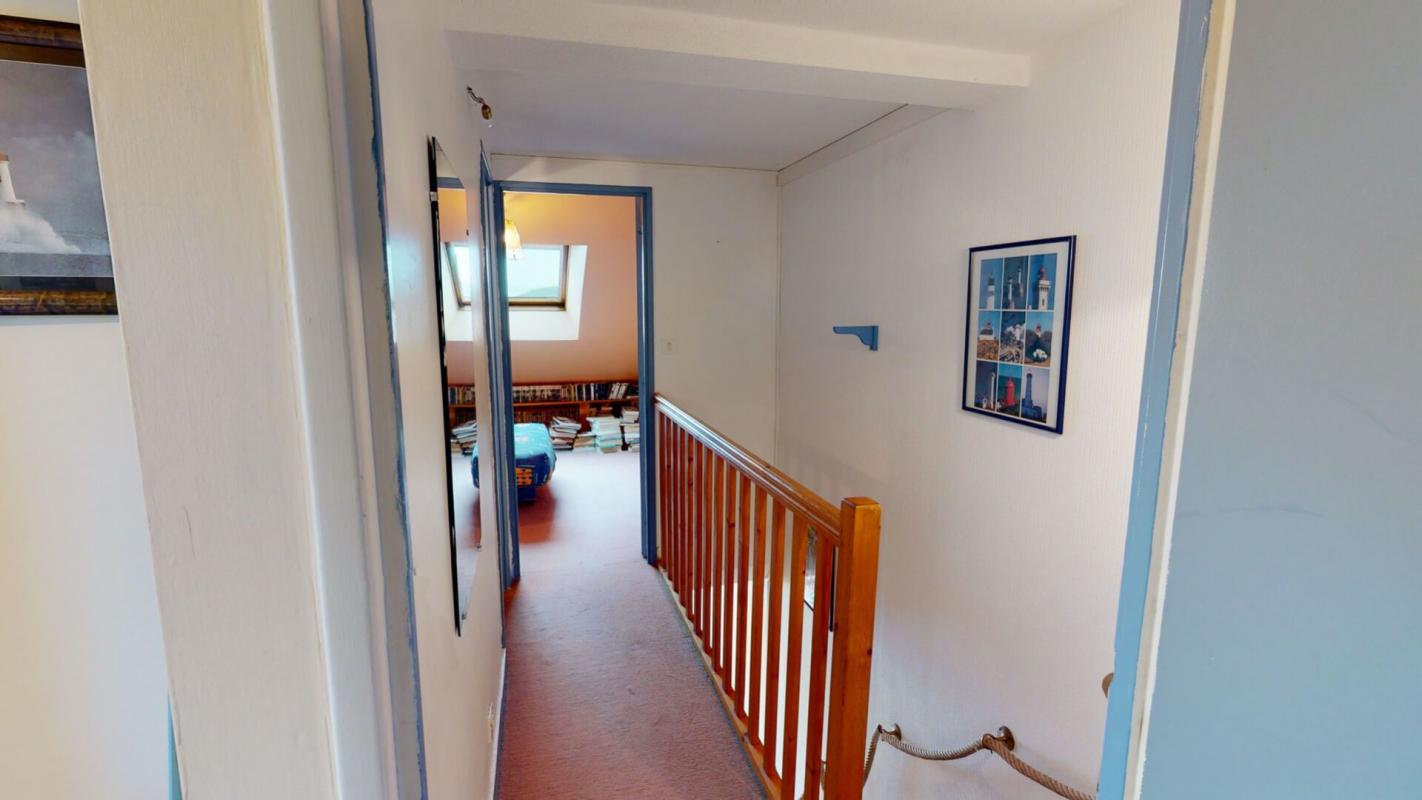 À l'étage, un couloir dessert deux chambres offrant un joli aperçu mer, ainsi qu'une salle de bains.