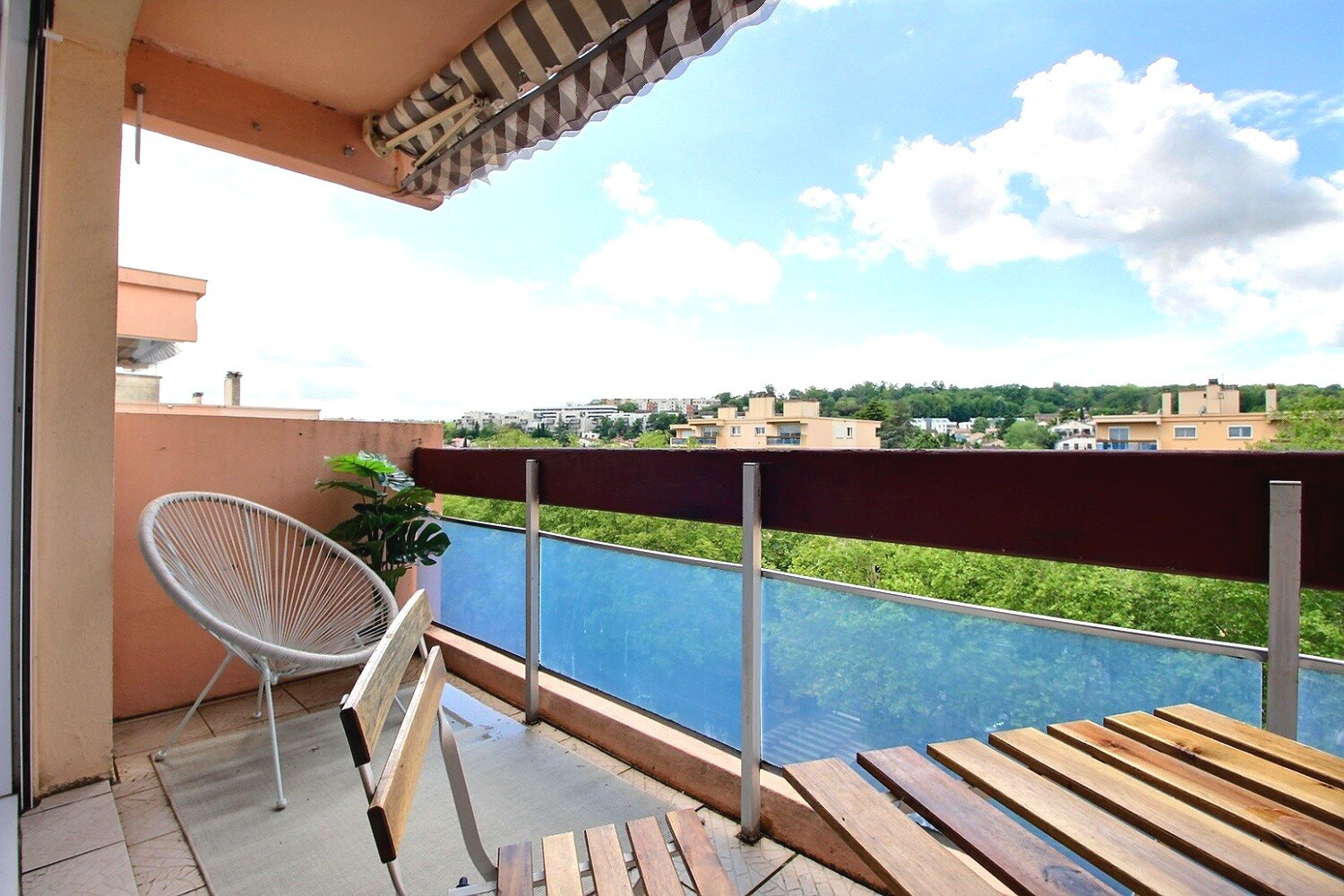 L'appartement, actuellement en configuration grand T3, comprend : une entrée, un séjour double lumineux donnant sur une terrasse exposé Sud Ouest, une cuisine equipée, deux chambres dont une avec accès terrasse, cellier/dressing, une salle d'eau et un wc séparé.